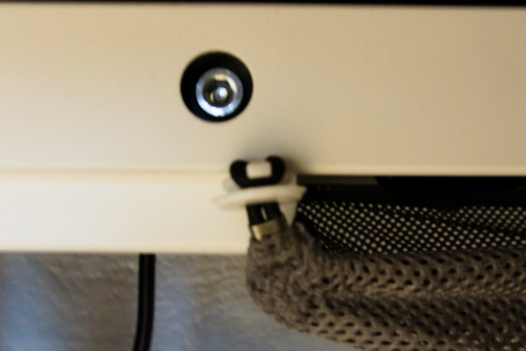 Este sistema de montaje le permite montar la red de gestión de cables incluida en su escritorio Ikea Bekant/Galant. Perfecto para aquellos que han cambiado el tablero de la mesa y han utilizado todos los 'clips' para instalar el nuevo tablero, y por lo tanto ya no pueden montar la red de gestión de cables.