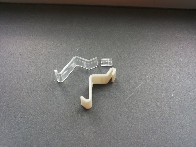 Esta es una pieza de repuesto para una lámpara 'Lock' de Ikea. Si los clips de plástico originales se han roto, este clip de lámpara de repuesto se puede utilizar para volver a sujetar la pantalla de cristal.