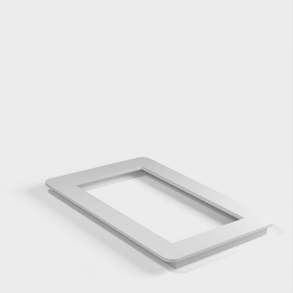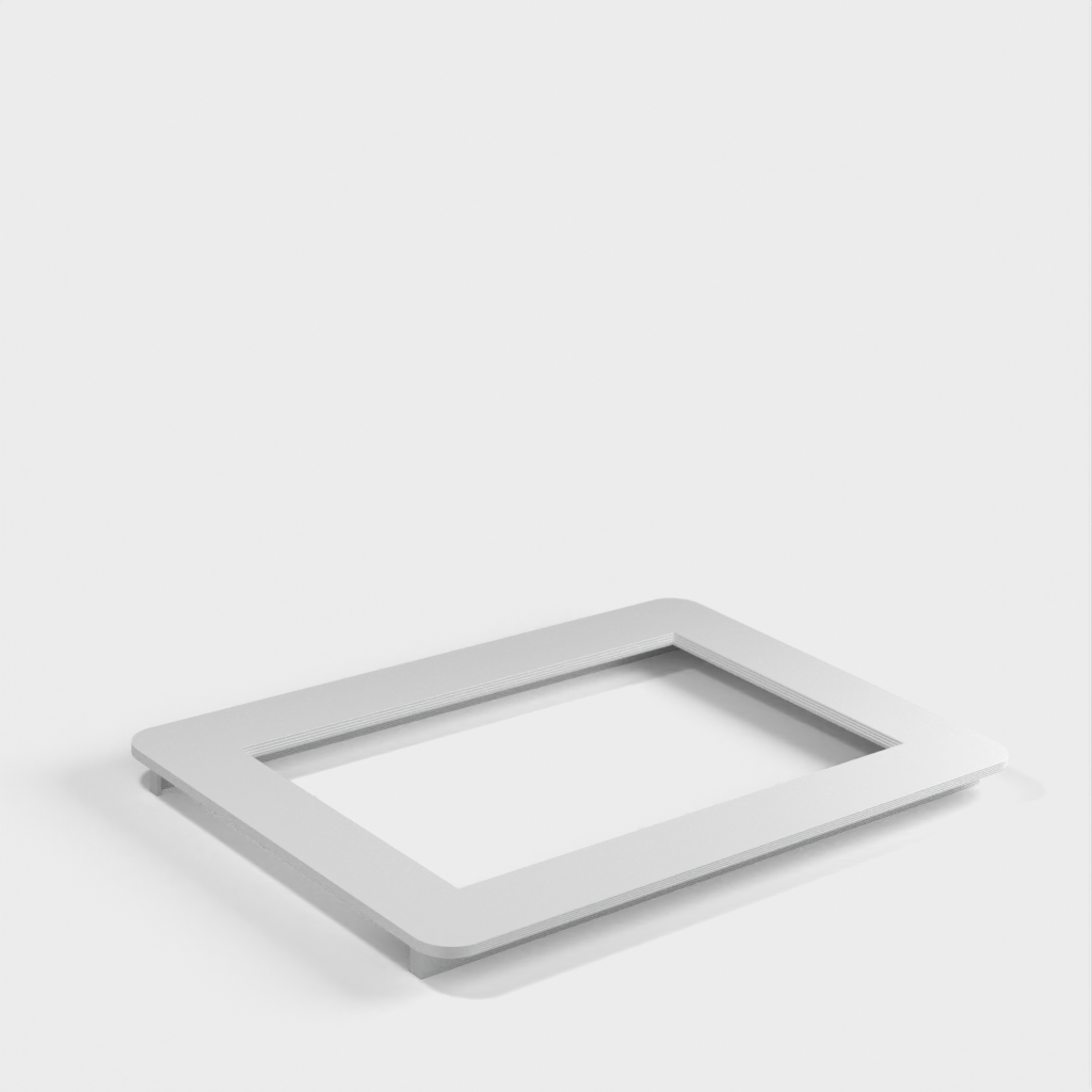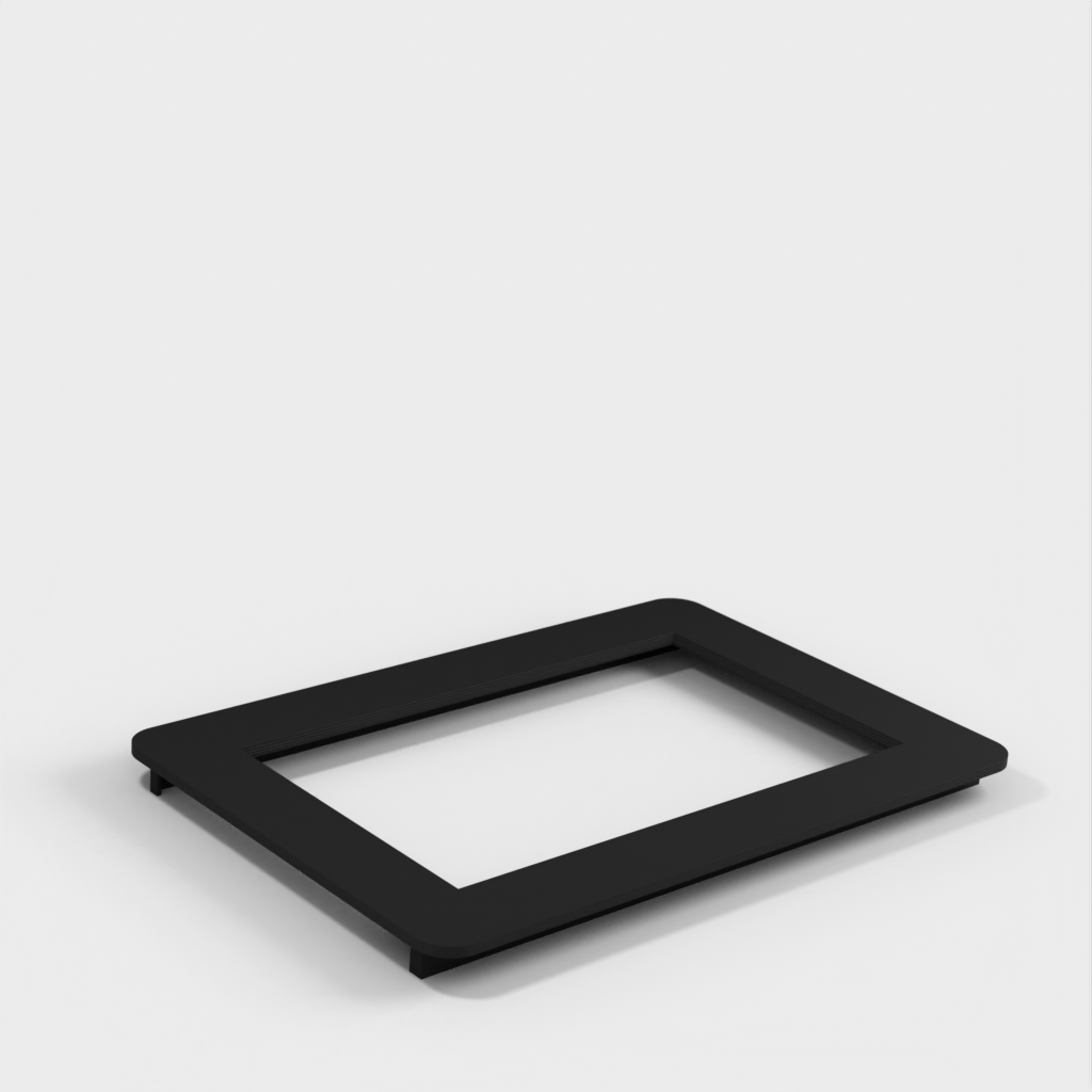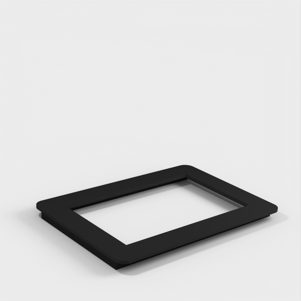Marco de fotos digital adaptado a la tableta Kindle Fire 7 de Amazon. El marco está disponible en 4 partes separadas más pequeñas o como un solo objeto para impresoras de mayor capacidad. Este marco incluye un soporte de nuevo desarrollo y un clip para sujetar la tableta. El frente está hecho de aluminio.