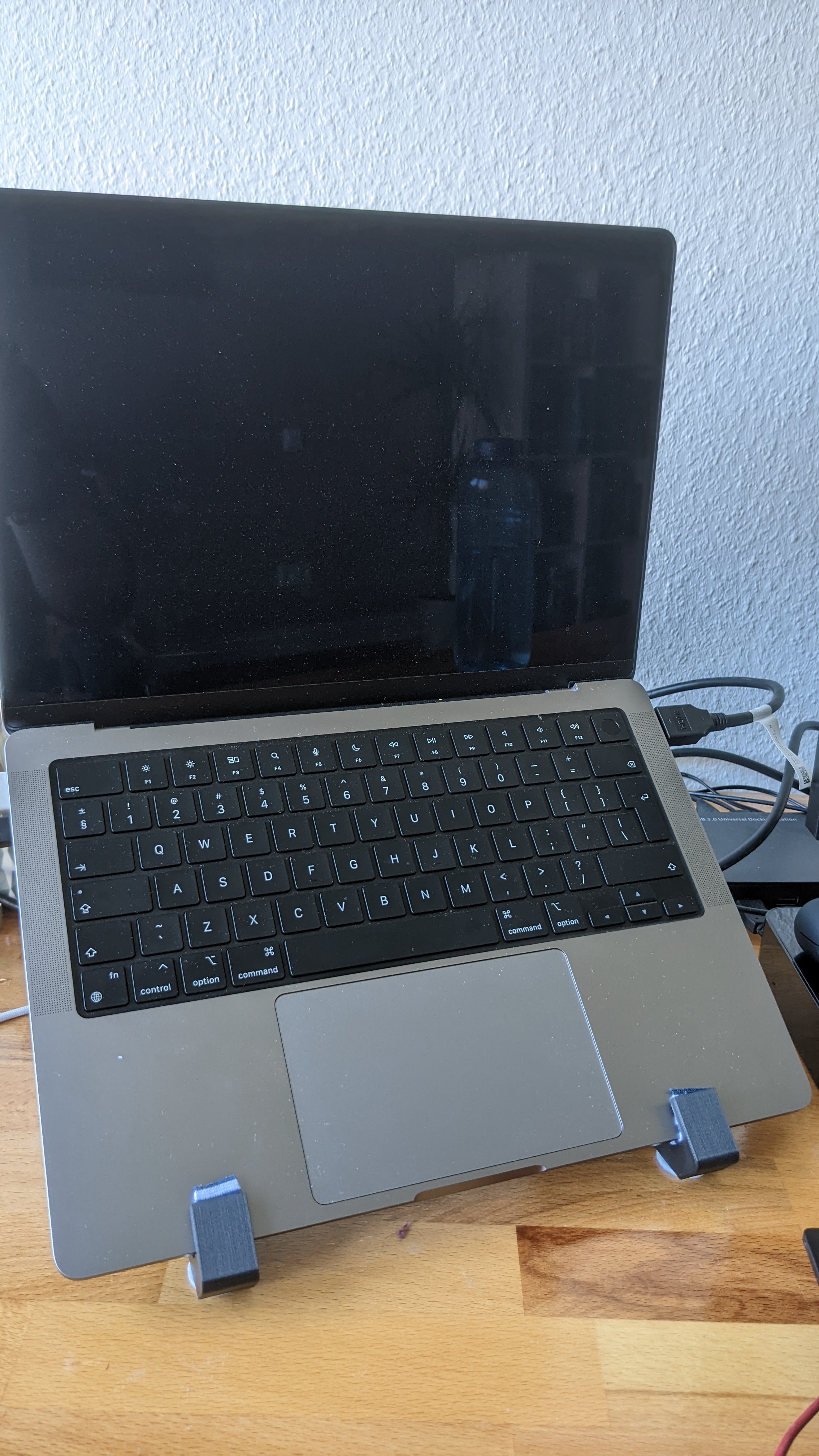 Nuestro soporte para Macbook Pro es perfecto para guardar su Macbook de 14' (2021) o cualquier otro portátil. La distancia del soporte entre los dos soportes es de 18 cm, por lo que hay espacio de sobra para la mayoría de trackpads. Este soporte incluye 2 soportes y 2 ejes que se encajan fácilmente. Recomendamos añadir alguna tela o similar a los ganchos para proteger los portátiles de posibles arañazos.