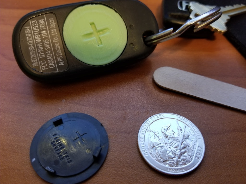 Cubierta de batería reemplazable para una llave de cerradura de puerta de control remoto Honda. El producto incluye dos versiones diferentes para diferentes tamaños de pila.