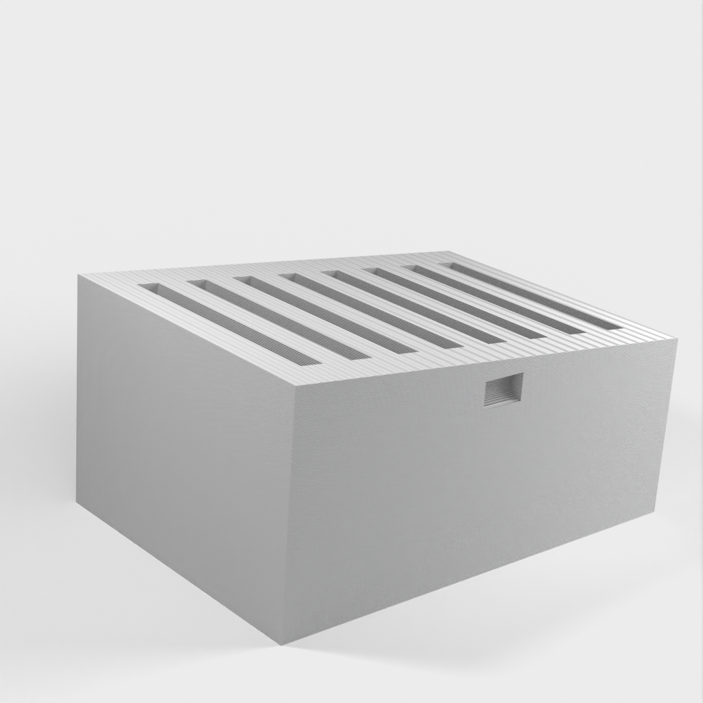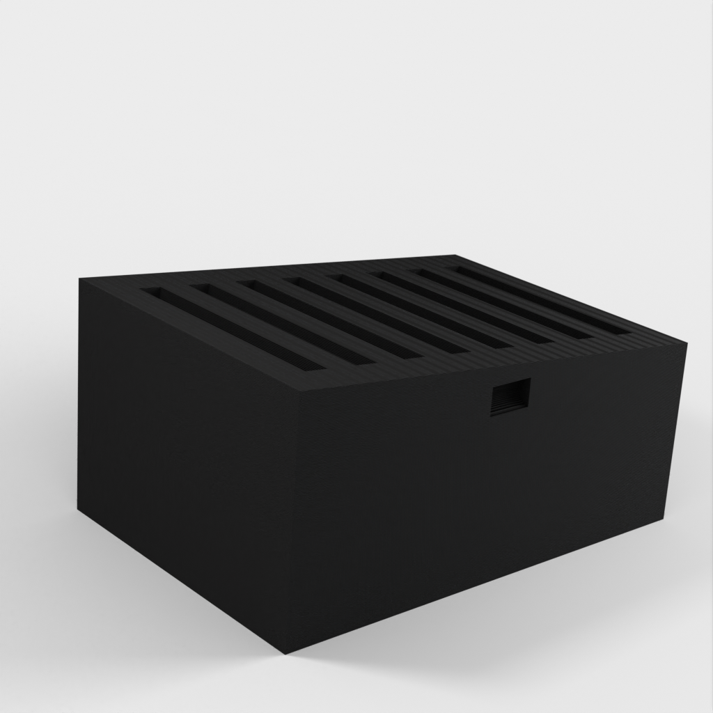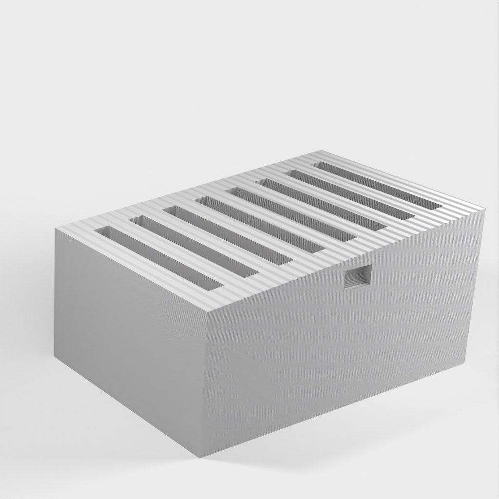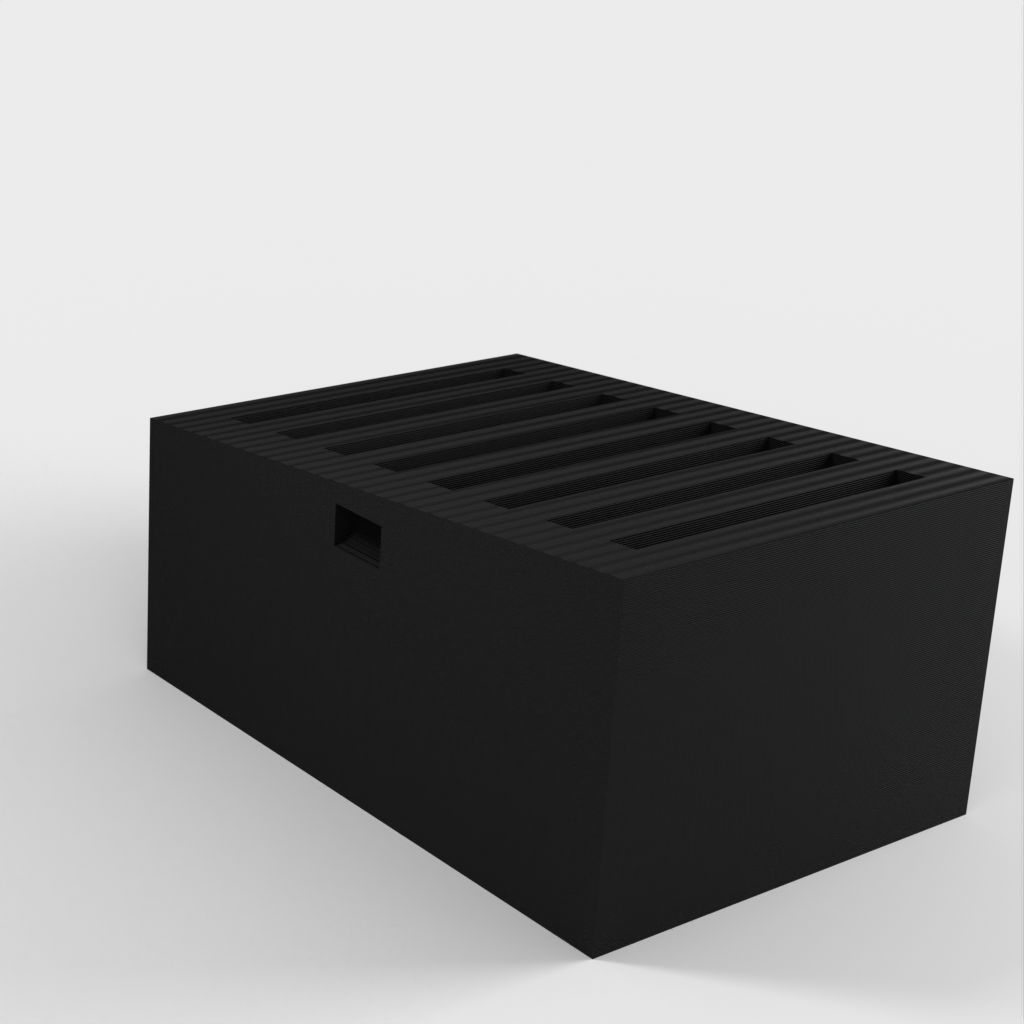 El soporte para tarjetas SD Mark 2 es una versión mejorada del soporte para tarjetas SD sencillo. Este modelo sigue teniendo capacidad para 8 tarjetas, pero ahora las ranuras para tarjetas son ligeramente más grandes, lo que facilita la inserción y extracción de tarjetas. En lugar de utilizar ranuras ajustadas para evitar que las tarjetas se caigan, a esta versión le he añadido una tapa que se encaja de forma segura y protegida.