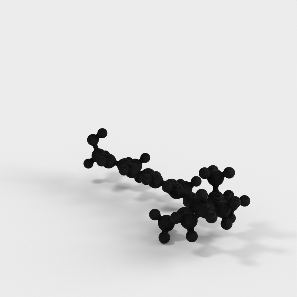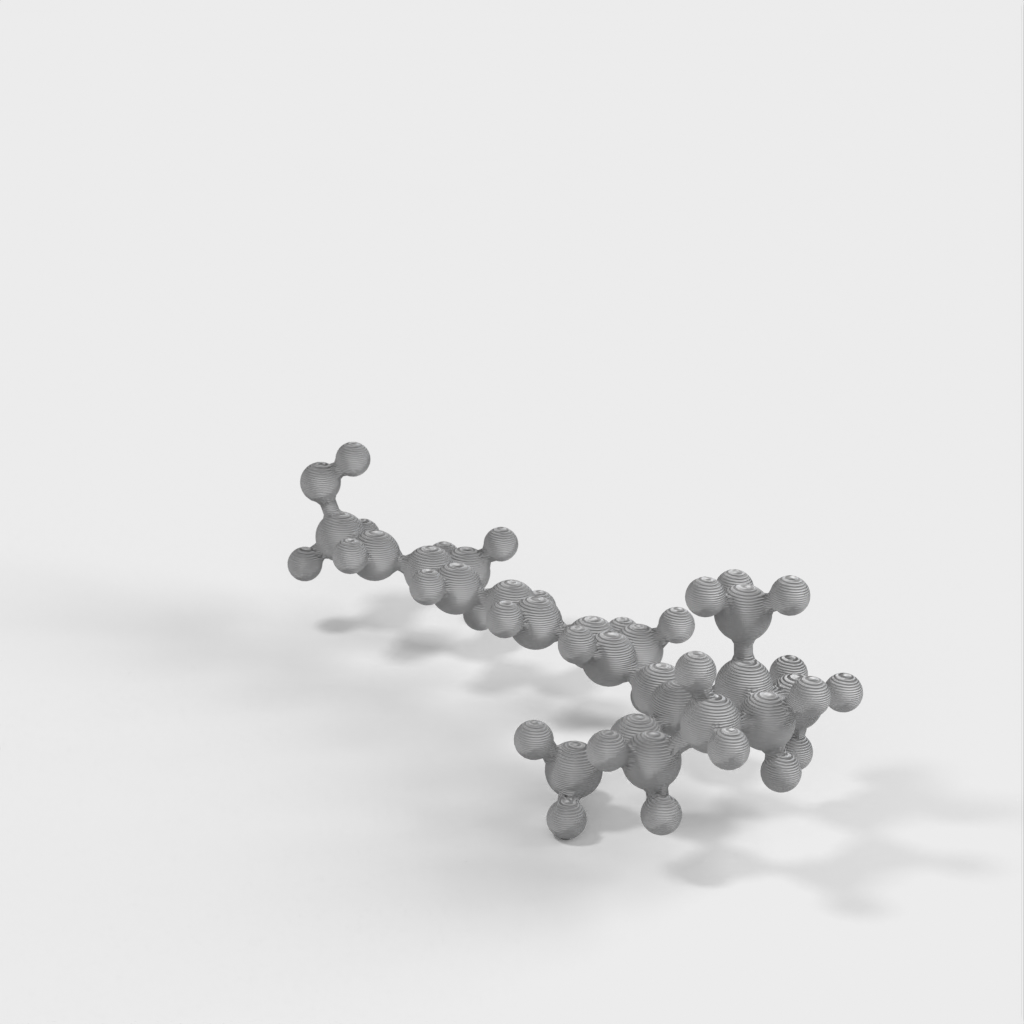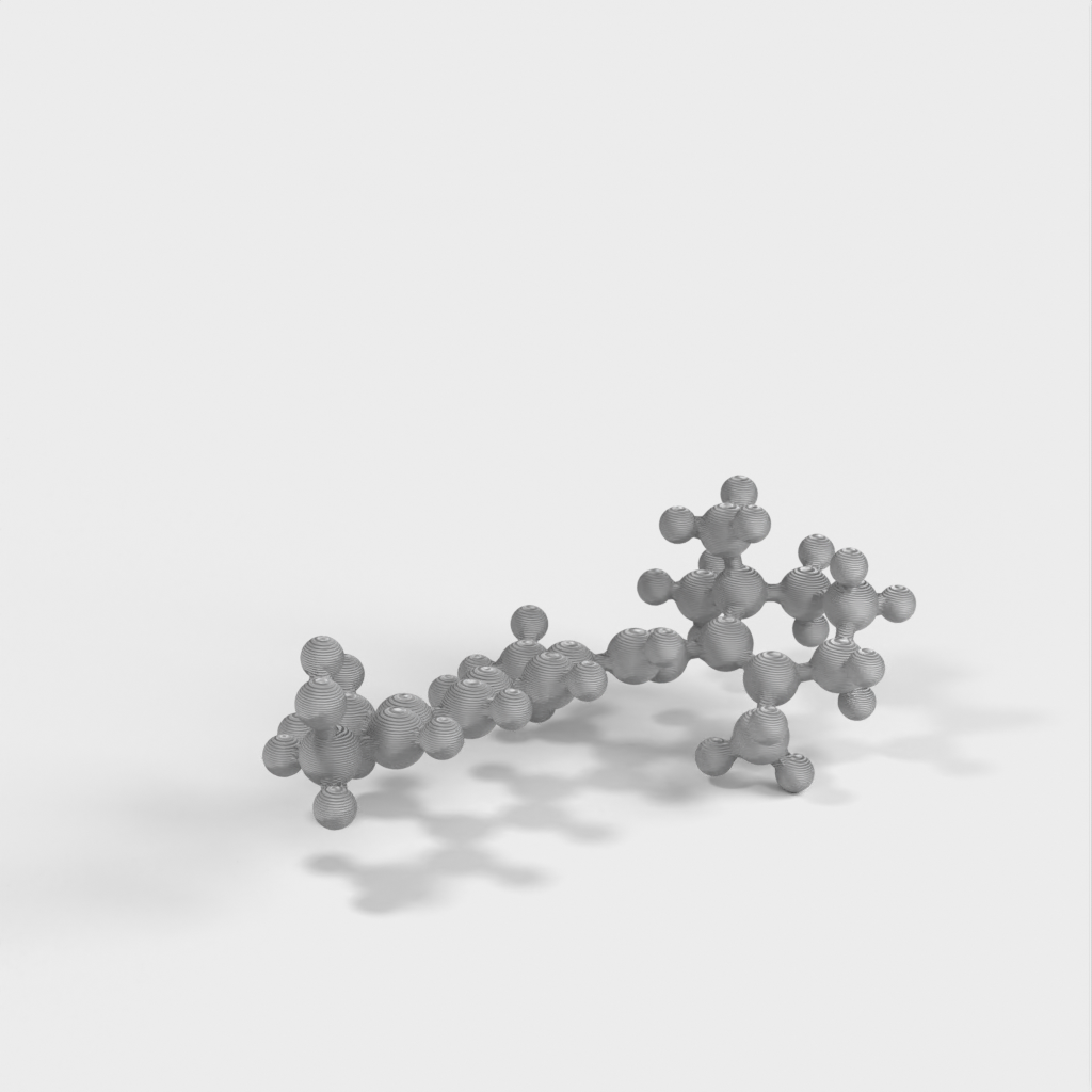Este es un modelo molecular de Retinol (Vitamina A) producido en formato STL. El modelo está diseñado para ser impermeable, múltiple y fácil de trabajar en 3D. Puede utilizarse como herramienta de aprendizaje para enseñar a los niños la química que hay detrás de las vitaminas y por qué necesitamos consumir ciertos alimentos como las verduras. El modelo representa los ángulos de enlace químico correctos gracias a la optimización de bandas atómicas y simulaciones computacionales.