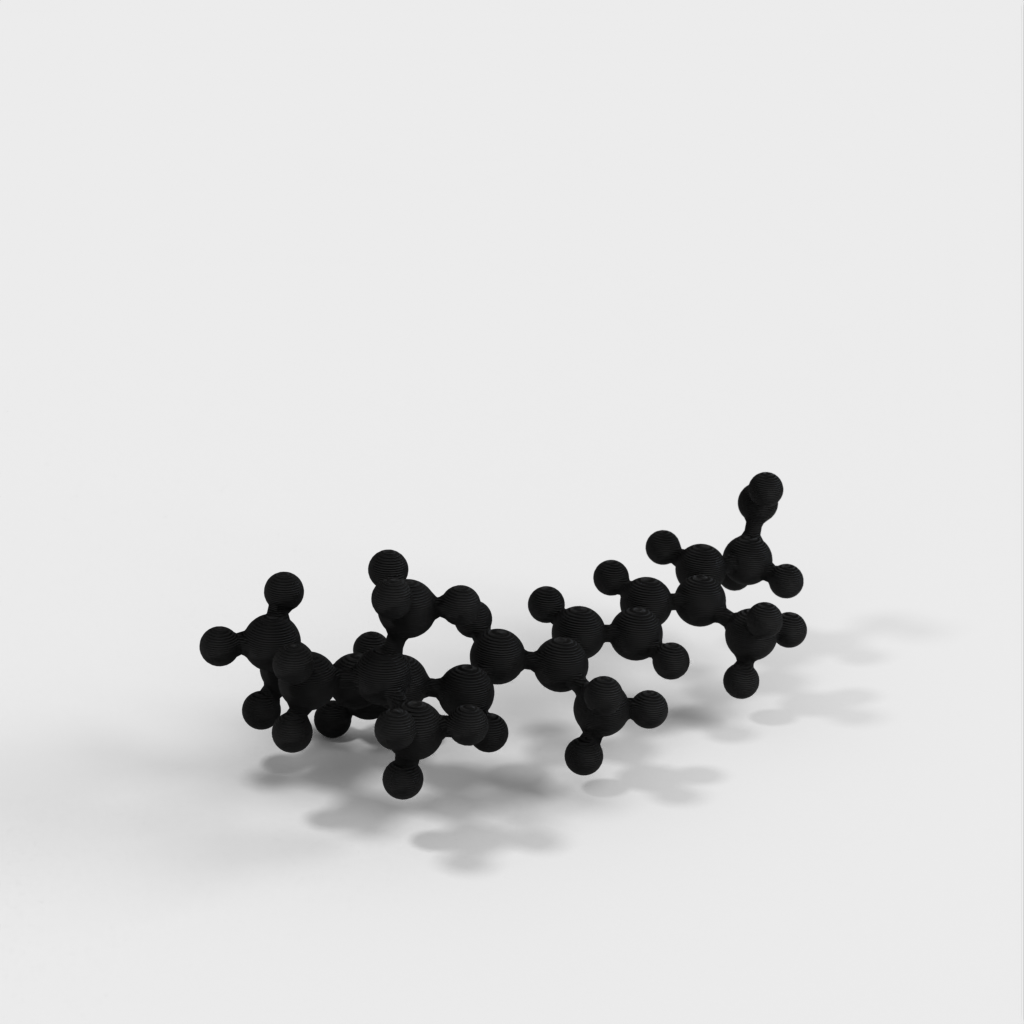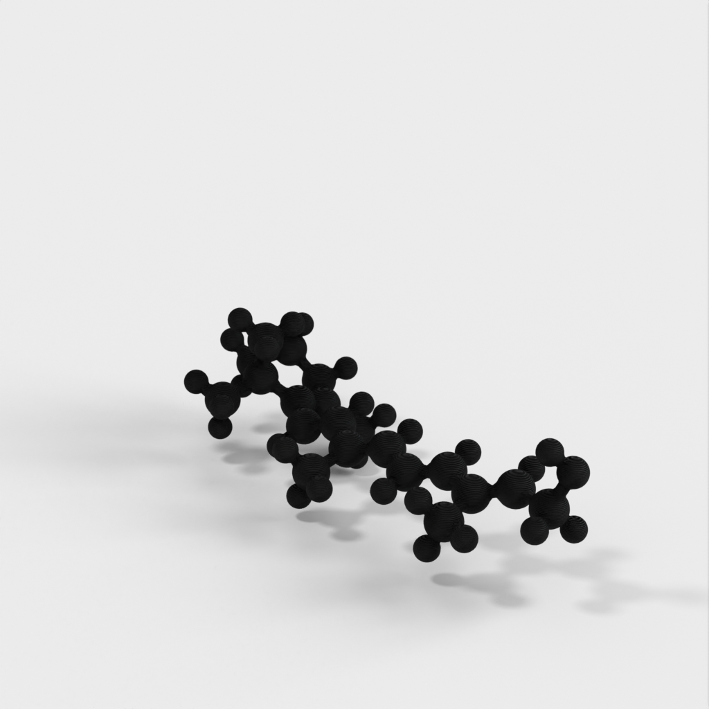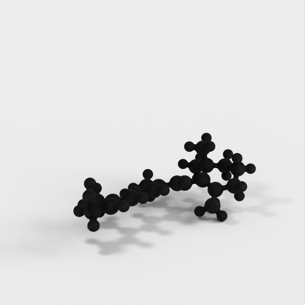 Este es un modelo molecular de Retinol (Vitamina A) producido en formato STL. El modelo está diseñado para ser impermeable, múltiple y fácil de trabajar en 3D. Puede utilizarse como herramienta de aprendizaje para enseñar a los niños la química que hay detrás de las vitaminas y por qué necesitamos consumir ciertos alimentos como las verduras. El modelo representa los ángulos de enlace químico correctos gracias a la optimización de bandas atómicas y simulaciones computacionales.