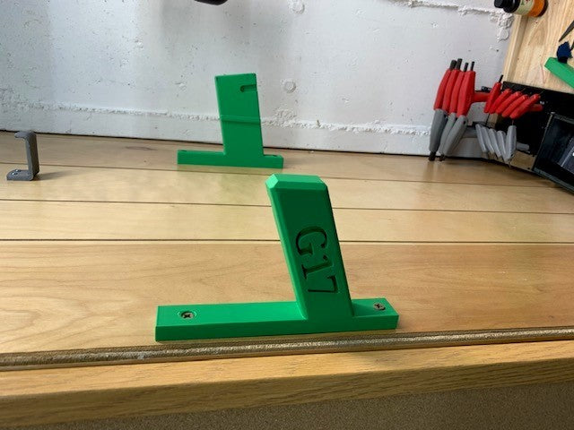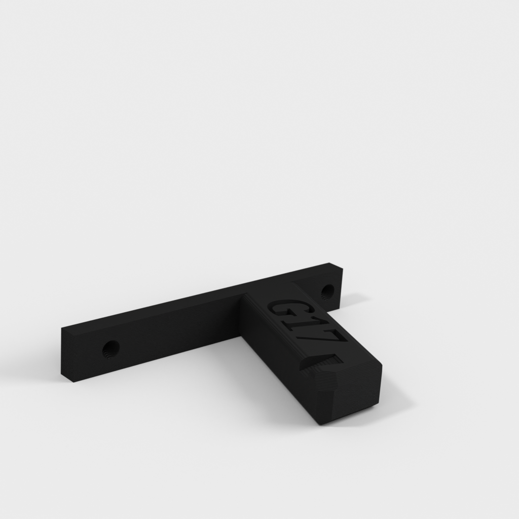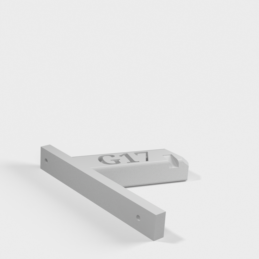 Con este montaje en pared, su Glock 17 se puede presentar de forma organizada, al mismo tiempo que se mantiene al alcance de la mano.