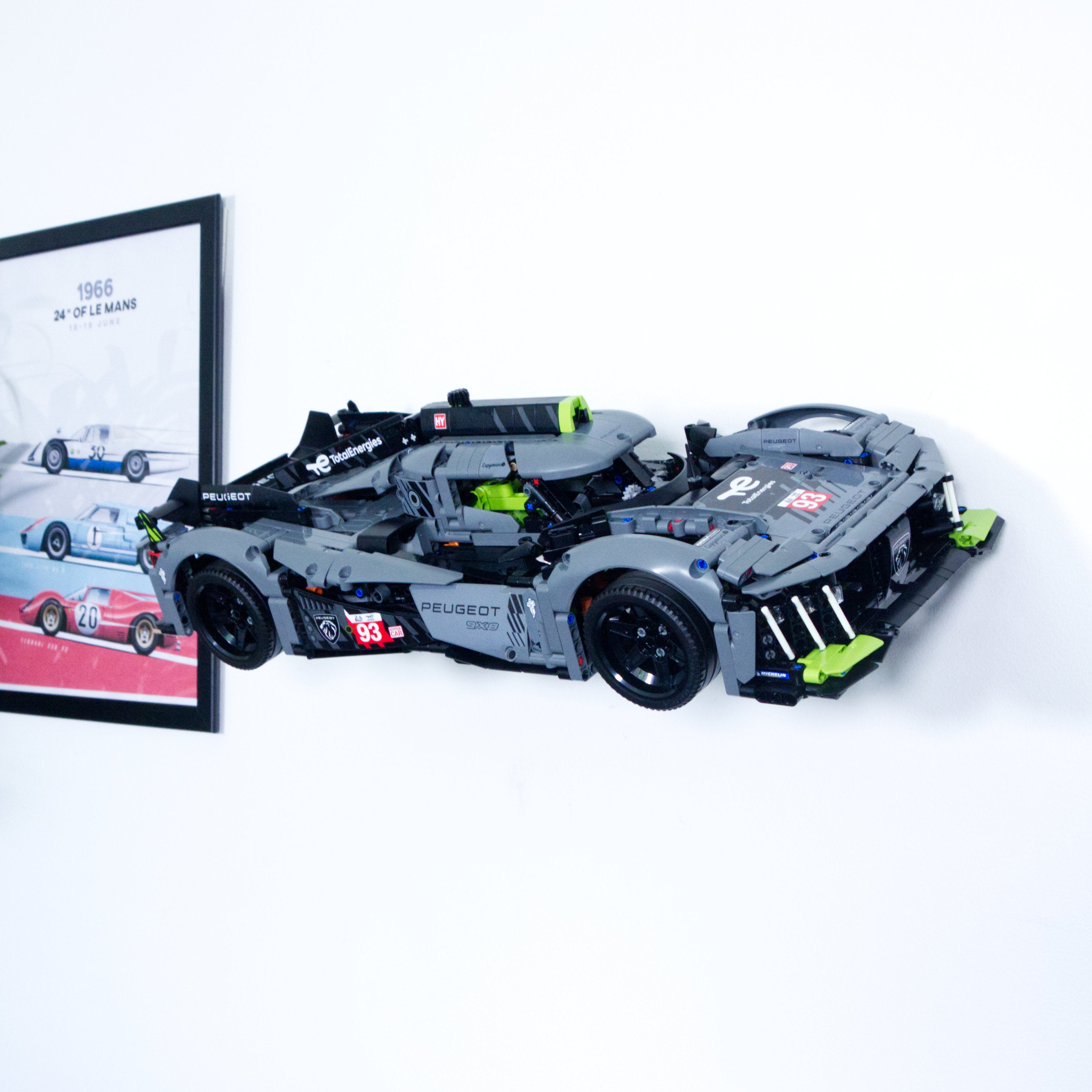 Este soporte de pared está diseñado específicamente para el LEGO Technic Peugeot 9X8 Le Mans Hypercar. Permite exhibir el modelo en varias posiciones, ya sea inclinado a la izquierda, a la derecha o plano contra la pared. Una solución ideal para mostrar su colección de una manera segura y presentable.