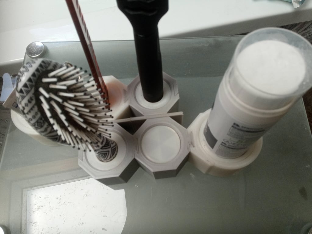 Mantenga su baño ordenado con este organizador de baño modular. Este juego consta de varios componentes diferentes, incluidos soportes de inserción, montaje en pared y varias tapas y cubiertas. Los soportes están disponibles en dos tamaños: una versión estándar y una versión XXL que es perfecta para artículos más grandes. Para una apariencia más estética y una limpieza más fácil, el juego también incluye tapas e insertos de tuercas.