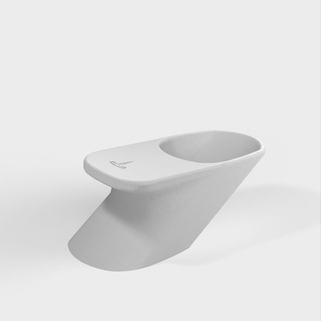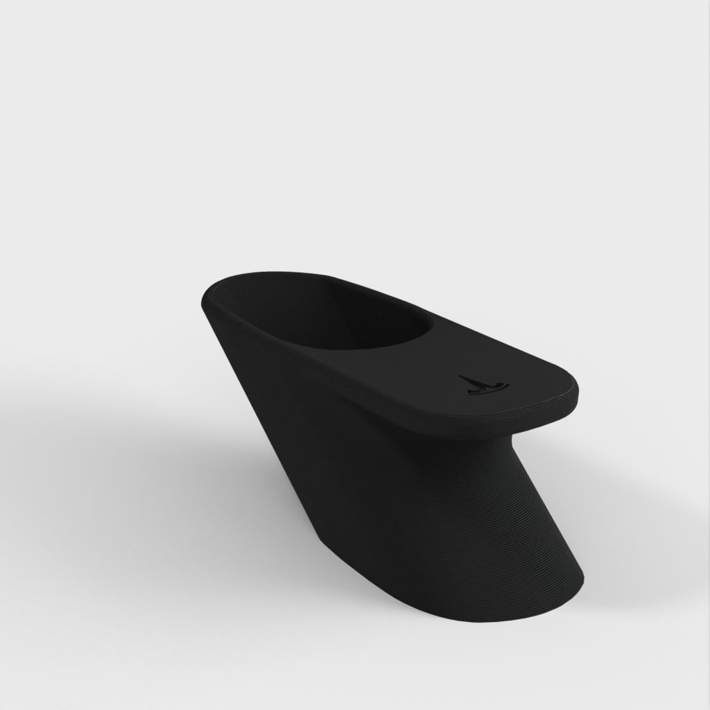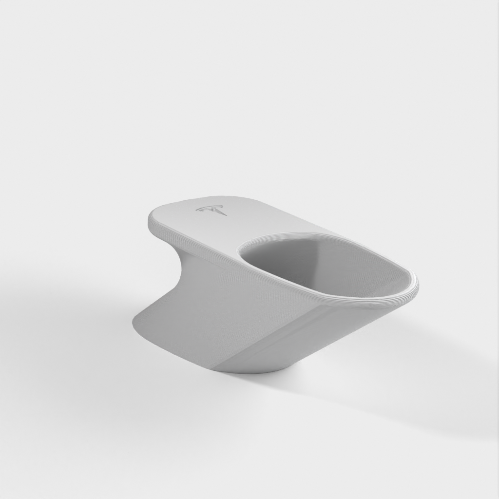 Una versión ligeramente modificada del organizador de cables Tesla Wall Plug con un pequeño logotipo intrincado. Esta versión no tiene texto.