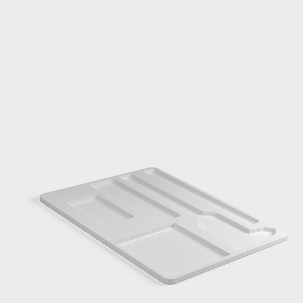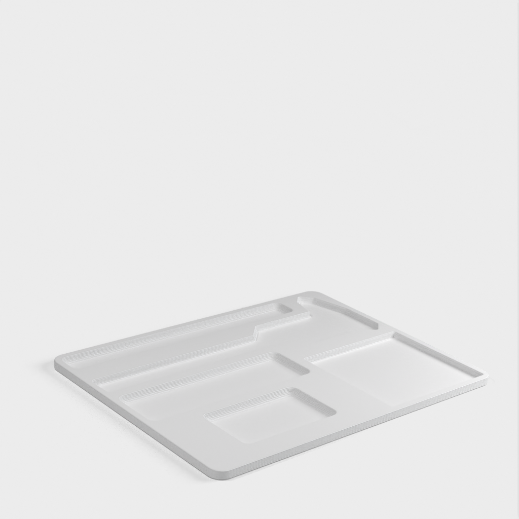 Se trata de un clasificador de sobremesa que incluye varias herramientas y elementos necesarios para un espacio de trabajo organizado y funcional. Incluye un medidor de tornillos CD-6' ASX Mitutoyo, una cinta métrica Milwaukee 48-22-6617, una navaja multiusos Milwaukee 48-22-1501 y un soporte Pop Up Post-it para notas. También hay un lugar para bolígrafos, lápices y artículos esenciales similares.