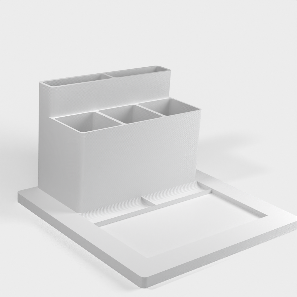 Organizador de escritorio sencillo y práctico. Este artículo crea orden y claridad para todos tus útiles de oficina, manteniéndolos ordenados y fácilmente accesibles: cada cosa tiene su propio espacio.