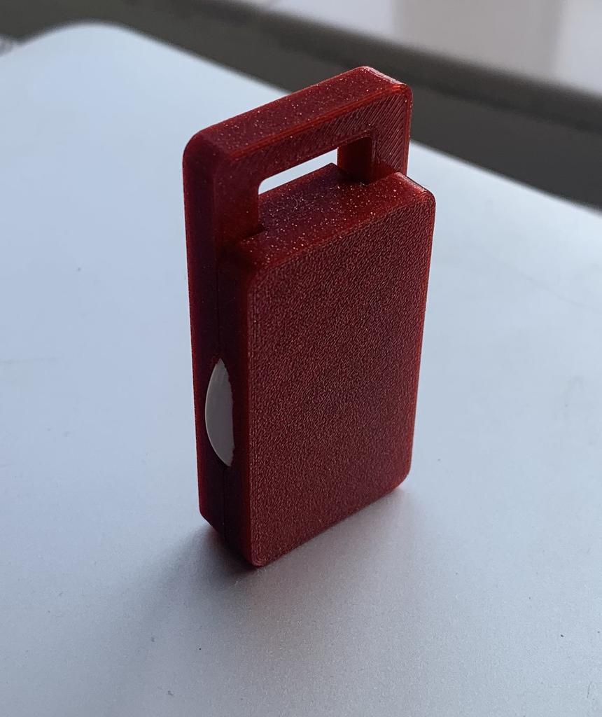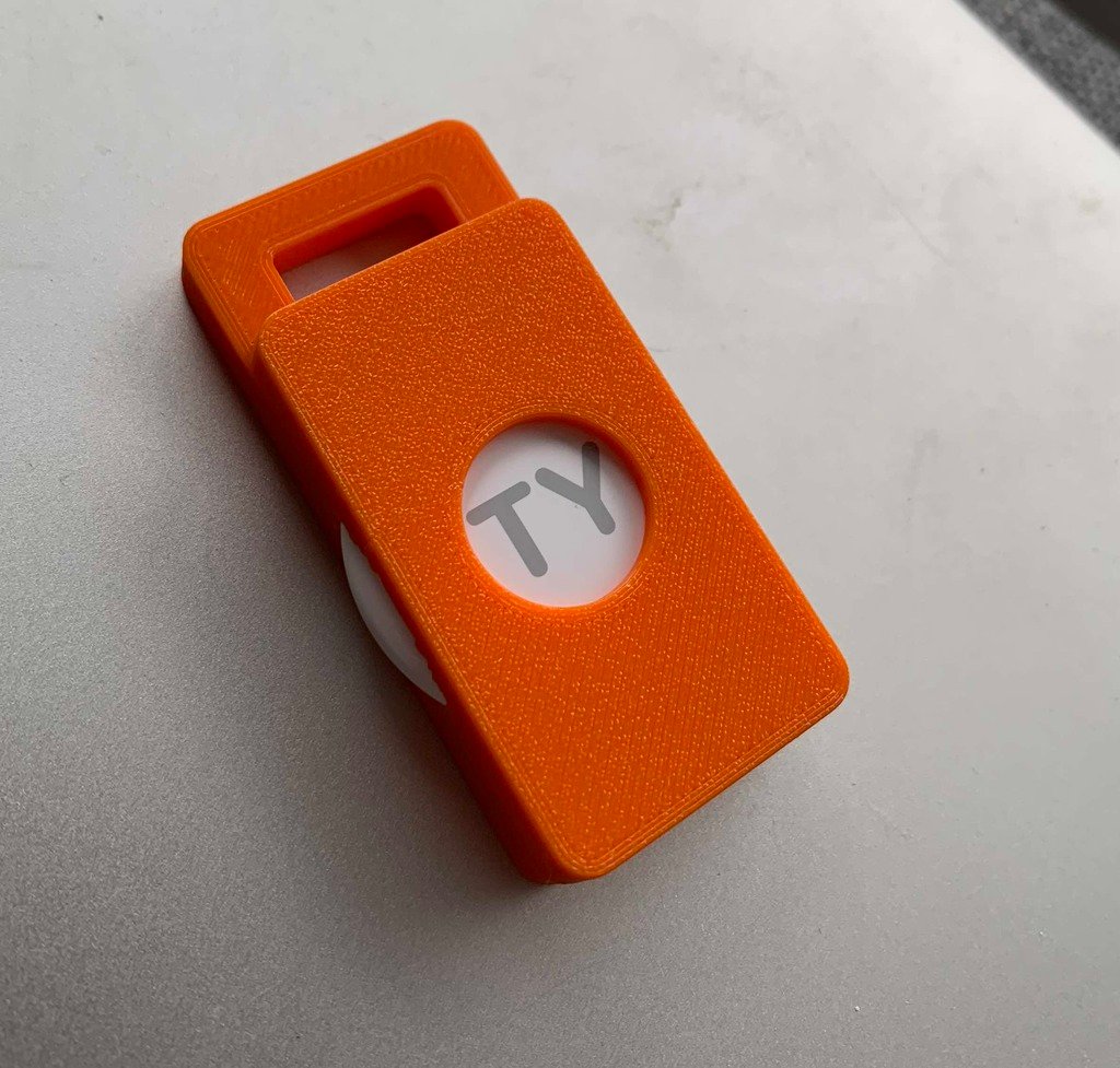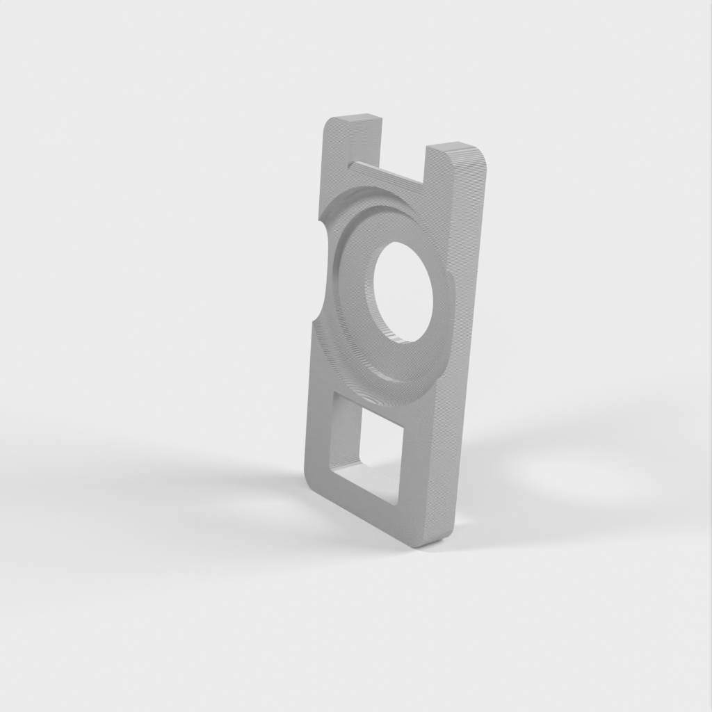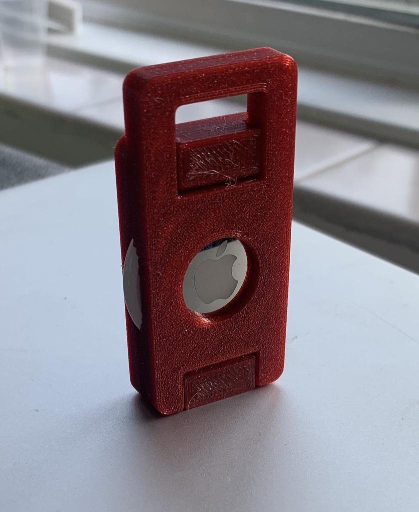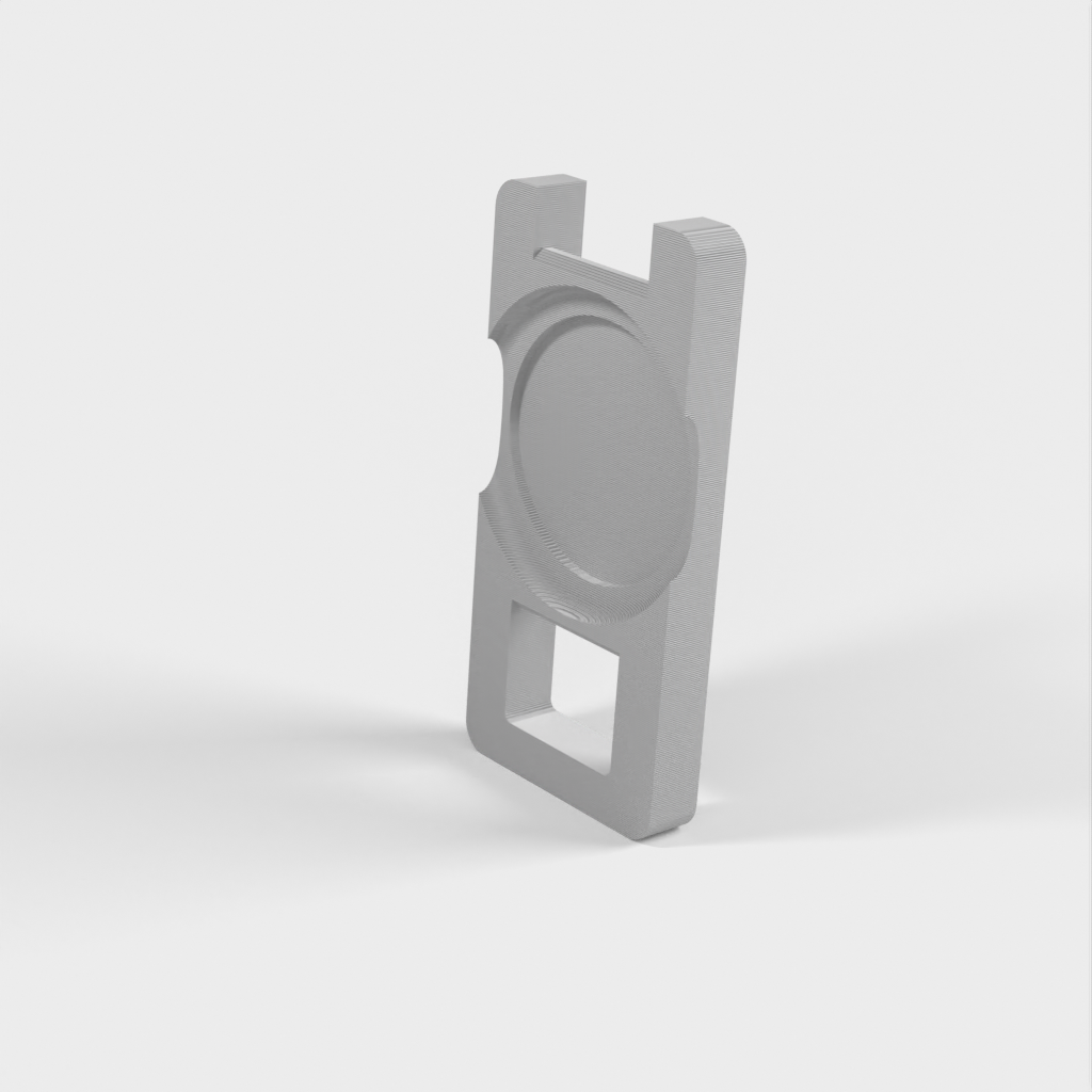 Un soporte de llavero para un AirTag. Este llavero está diseñado para sostener su AirTag de forma segura en su lugar para que pueda mantener fácilmente un registro de sus llaves. El soporte es flexible y fácil de montar.