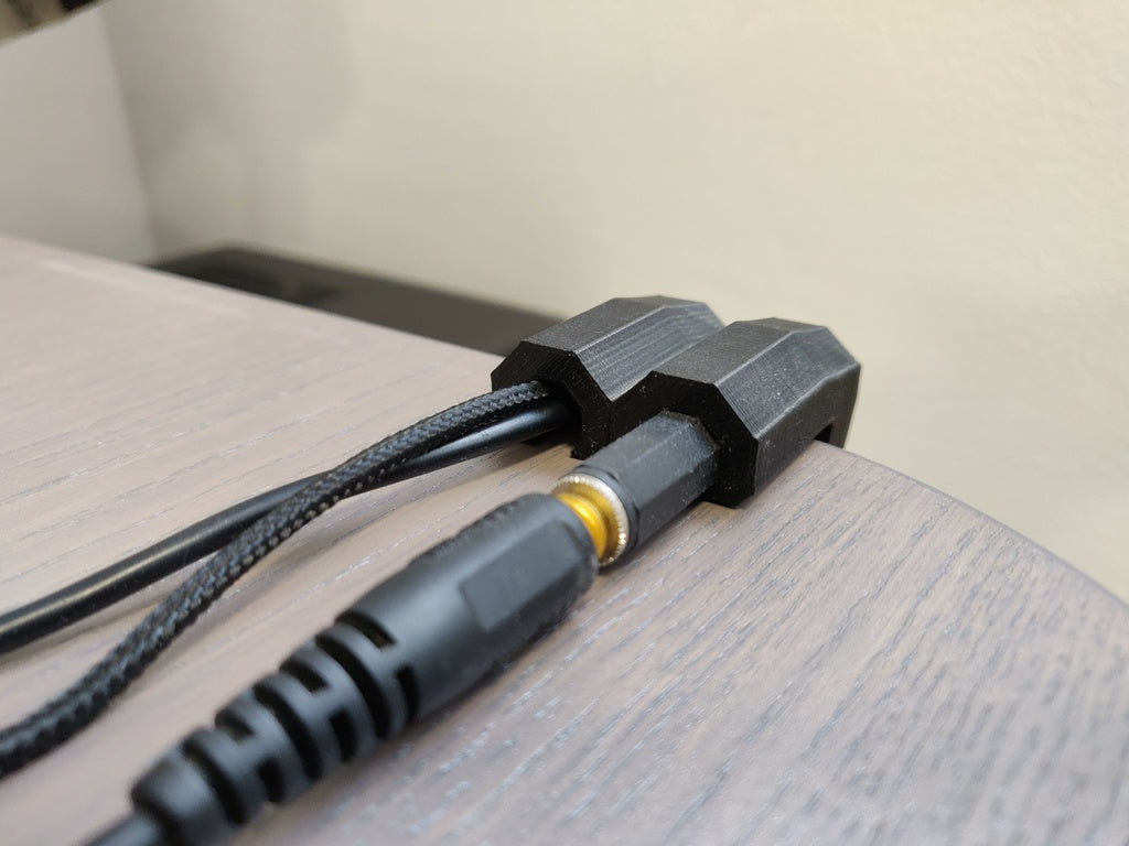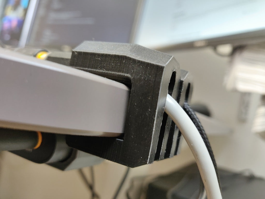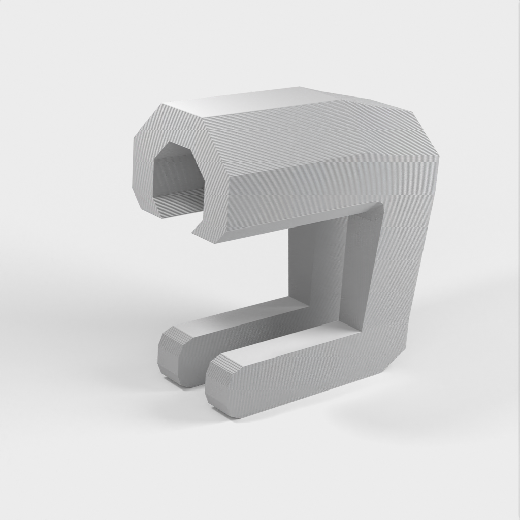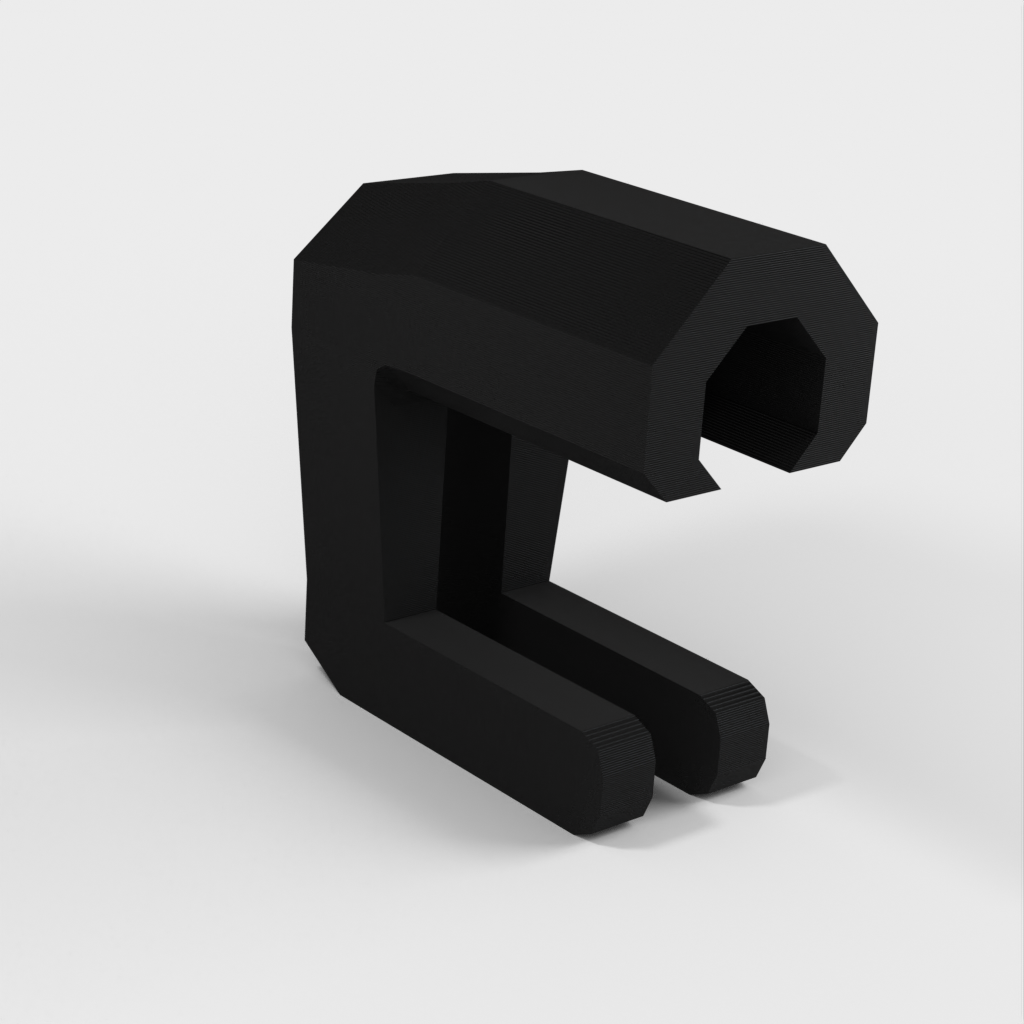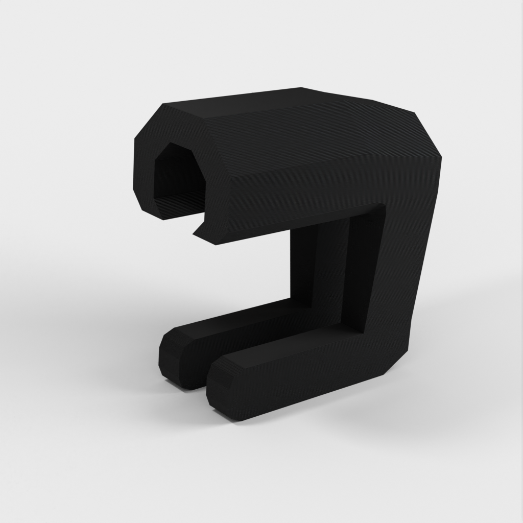 Un sencillo portacables, diseñado para adaptarse a la mesa IKEA BEKANT. Este soporte ayuda a gestionar los cables de los auriculares, el ratón y el teclado, manteniéndolos seguros y organizados. Perfecto para cualquier hogar u oficina donde los cables pueden ensuciarse o caer al suelo. Este producto está destinado a mesas con un espesor de 1,6 cm.