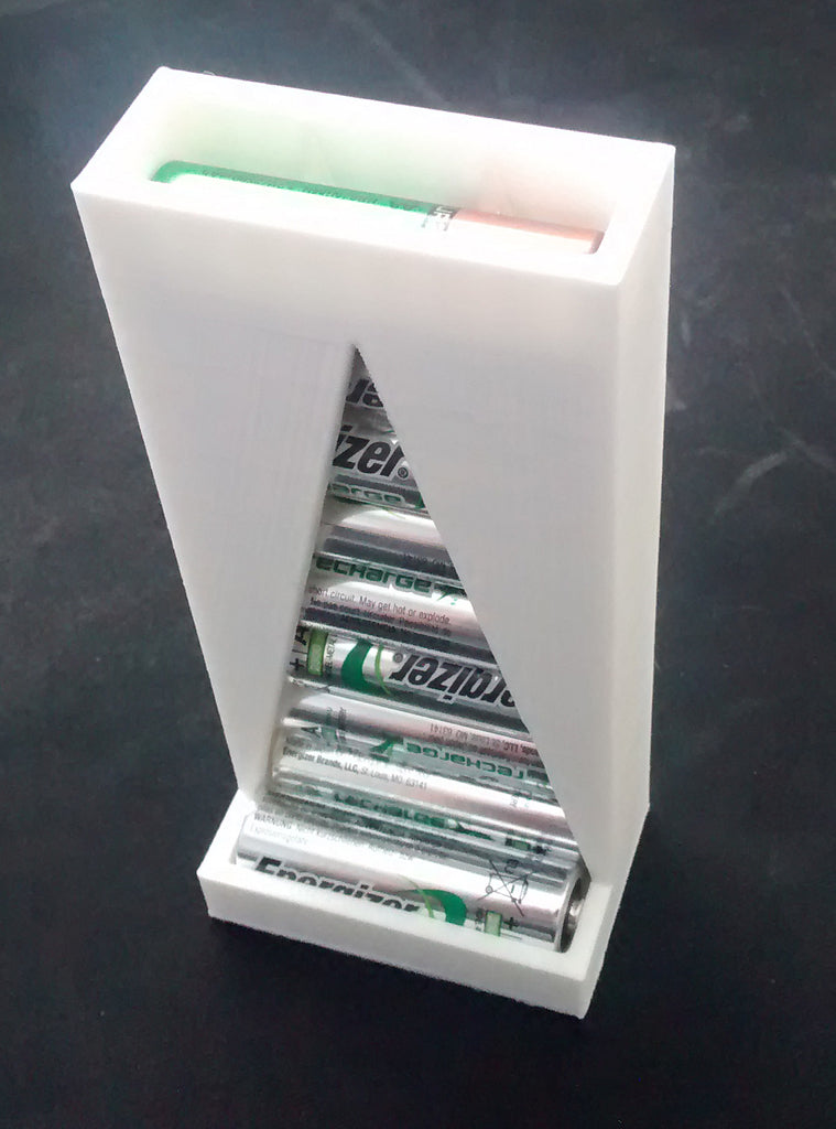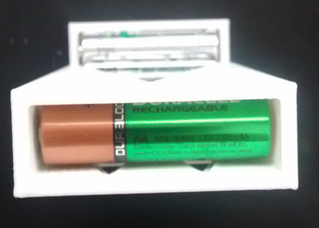 Un soporte muy práctico para pilas AA. Con orificios de montaje incorporados, el portapilas puede instalarse fácilmente donde más le convenga. El portapilas no requiere ninguna estructura de soporte durante el proceso de impresión.