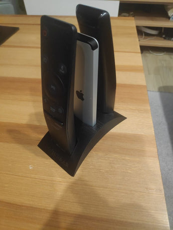 Este práctico soporte está diseñado para ayudar a crear orden y mantener unidas sus unidades de control más importantes. Proporciona espacio para dos mandos a distancia de Samsung (para TV y barra de sonido), así como un mando a distancia de Apple TV de 2.ª generación. Con este soporte, se asegura de que sus mandos a distancia estén siempre a mano y sean fáciles de encontrar, lo que elimina la molestia de tener que buscarlos.