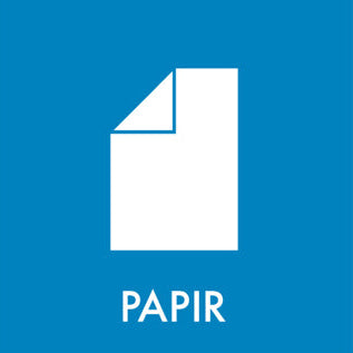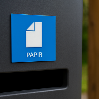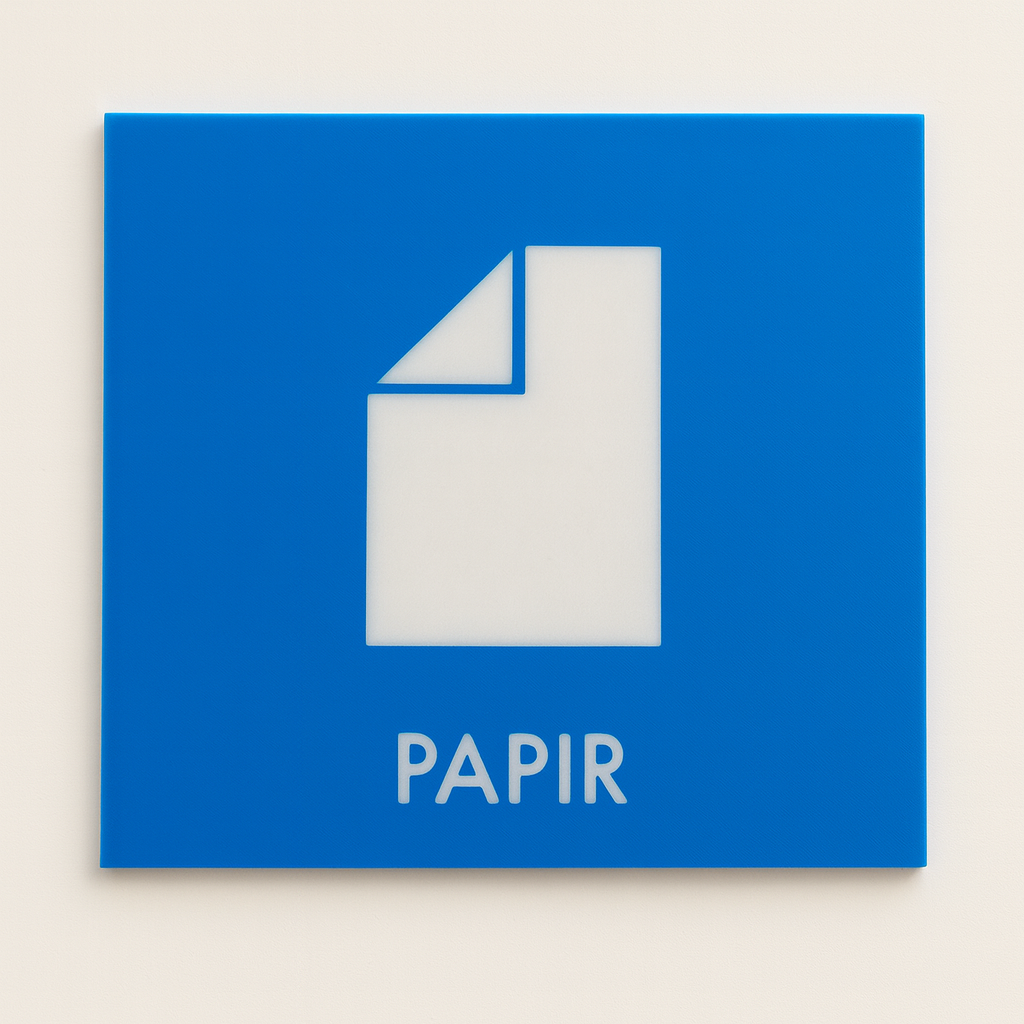 Producido en plástico PLA con un icono y texto claros que siguen el sistema de clasificación danés.