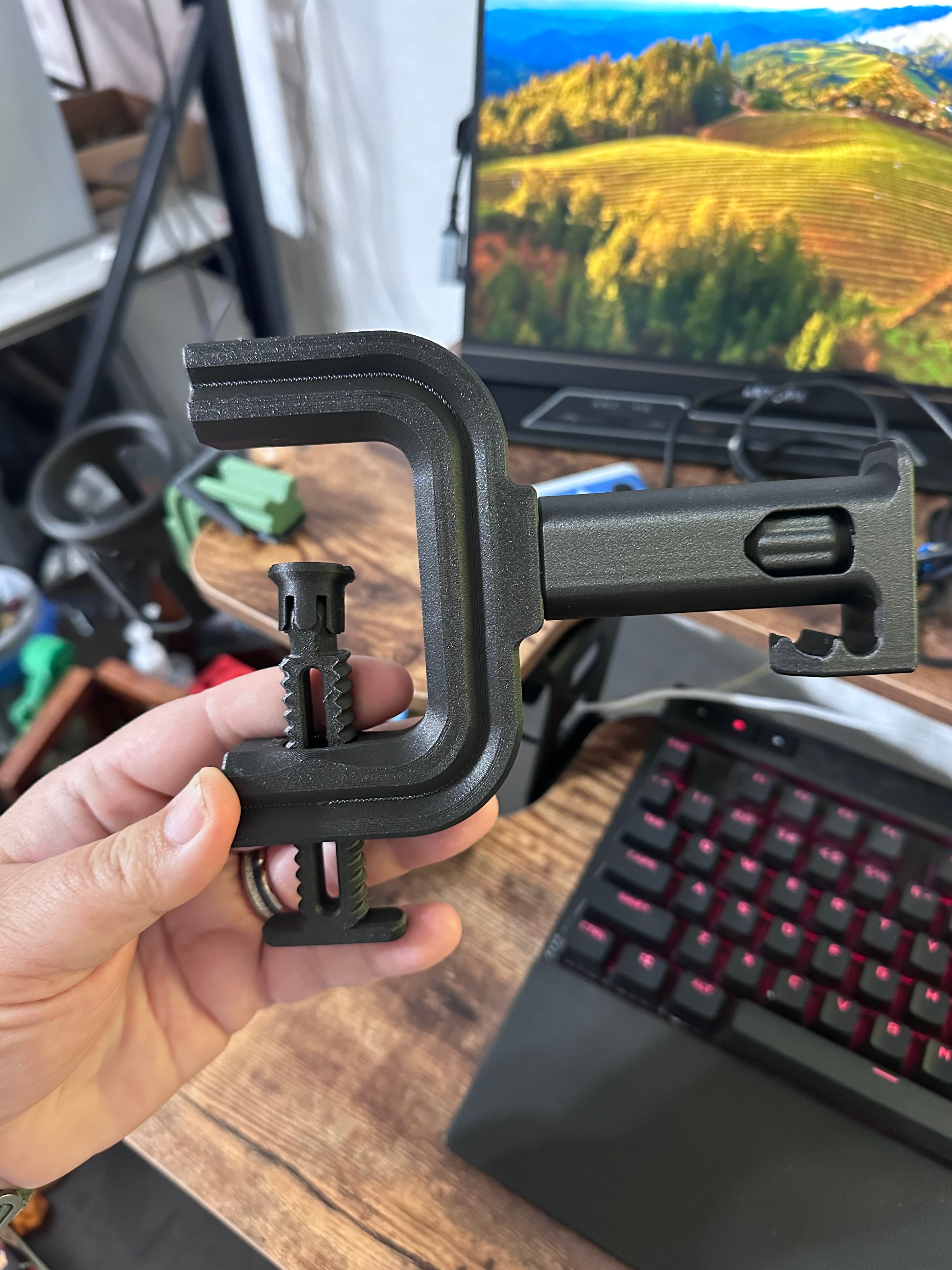Optimice su espacio de trabajo con este versátil sistema modular de abrazaderas de escritorio. Diseñado para crear una mejor organización en su escritorio, este sistema ofrece una solución práctica para almacenar artículos esenciales. Se puede transformar fácilmente según sus necesidades, funcionando como portacarretes, portavasos o soporte para auriculares. El producto es robusto y está diseñado específicamente para fijarse de forma segura a escritorios más gruesos, lo que garantiza estabilidad y fiabilidad. Mantenga sus herramientas más importantes al alcance y contribuya a un entorno de trabajo ordenado y eficiente.
