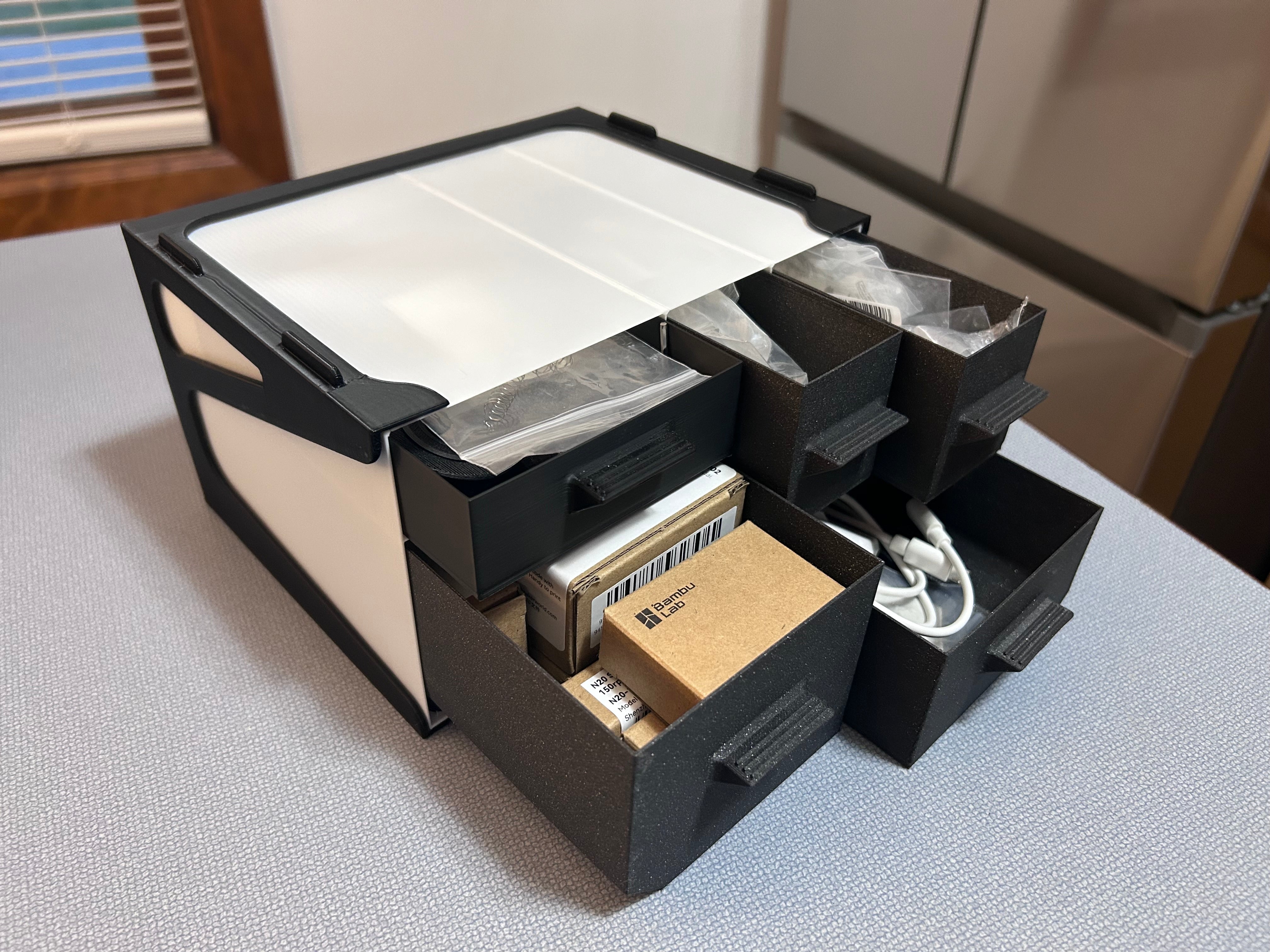 Descubre la funcionalidad de nuestro Sistema de Organizadores de Estantes Apilables - Cajonera, diseñada para encajar perfectamente en tu sistema de estanterías existente. Este organizador de cajones está disponible en diferentes tamaños, lo que lo hace ideal para almacenar una amplia variedad de artículos, desde suministros de oficina hasta utensilios de cocina.