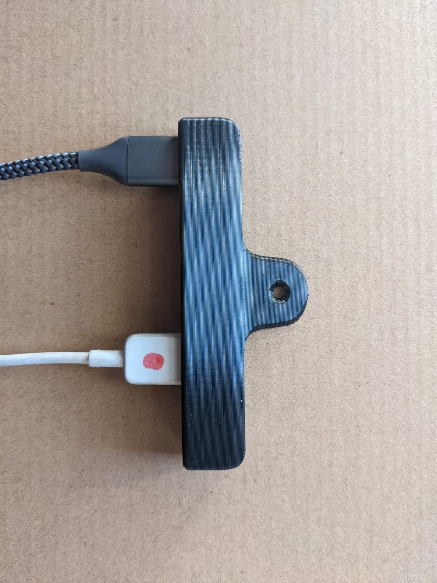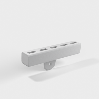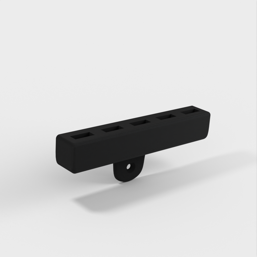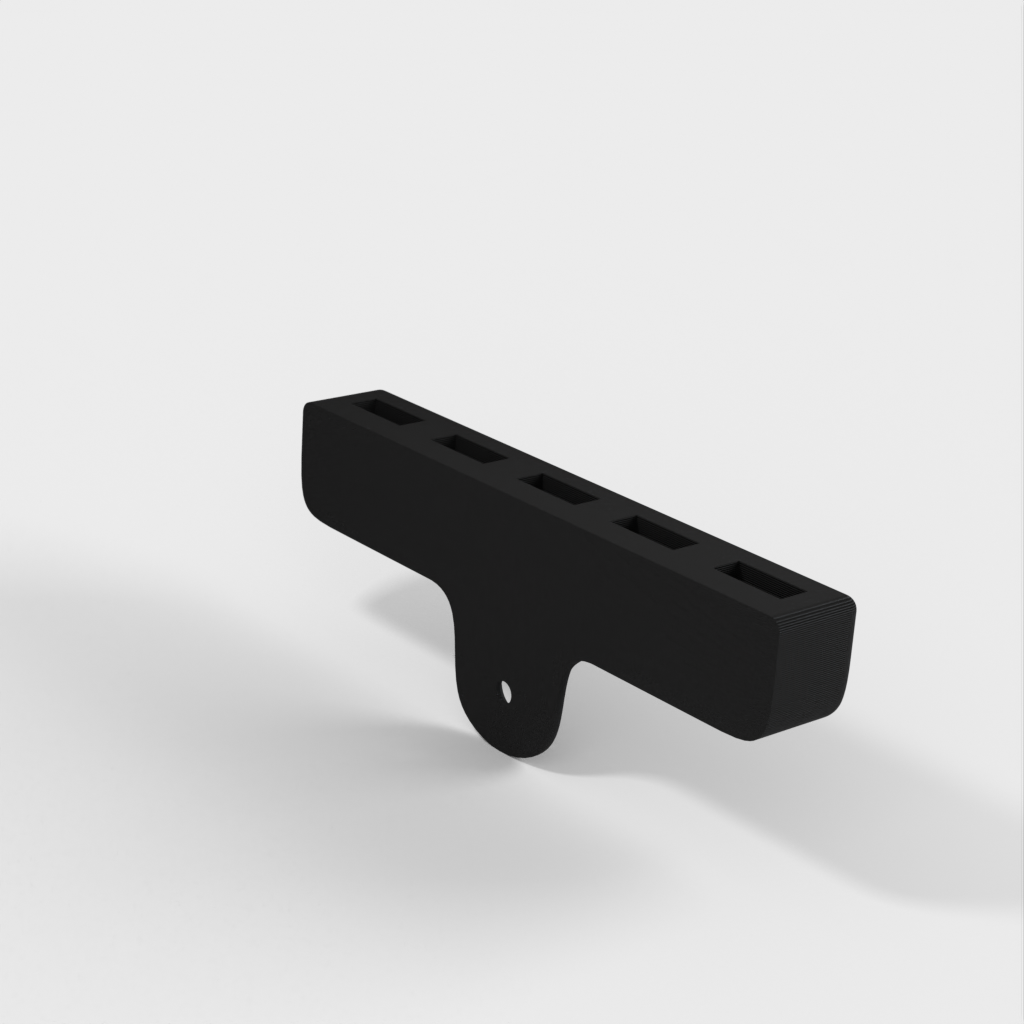 Este es un soporte USB con espacio para 5 cables diseñado para colgar en la pared junto a su escritorio, manteniendo sus cables fuera del camino pero fácilmente accesibles. El producto está diseñado para colgar hacia abajo y se fija a la pared mediante tornillos. Es necesario tener un poco de cuidado a la hora de atornillarlo a la pared para no partir la parte superior.