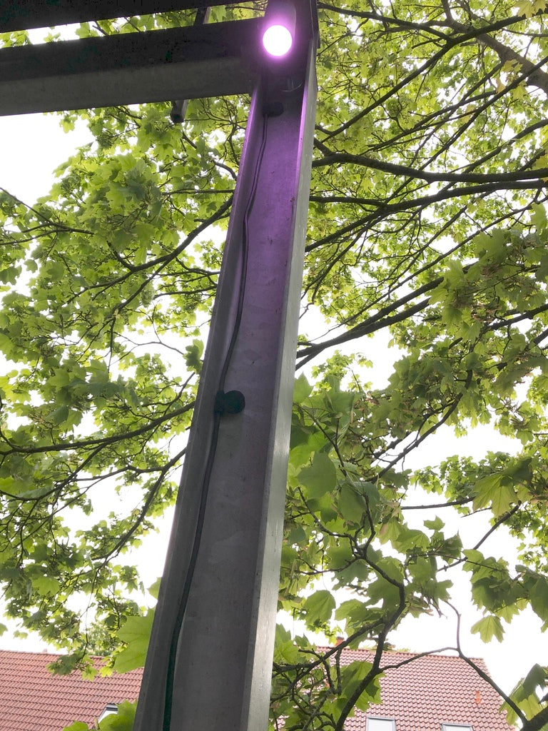 - Gestión eficiente de cables para luces exteriores Philips Hue.