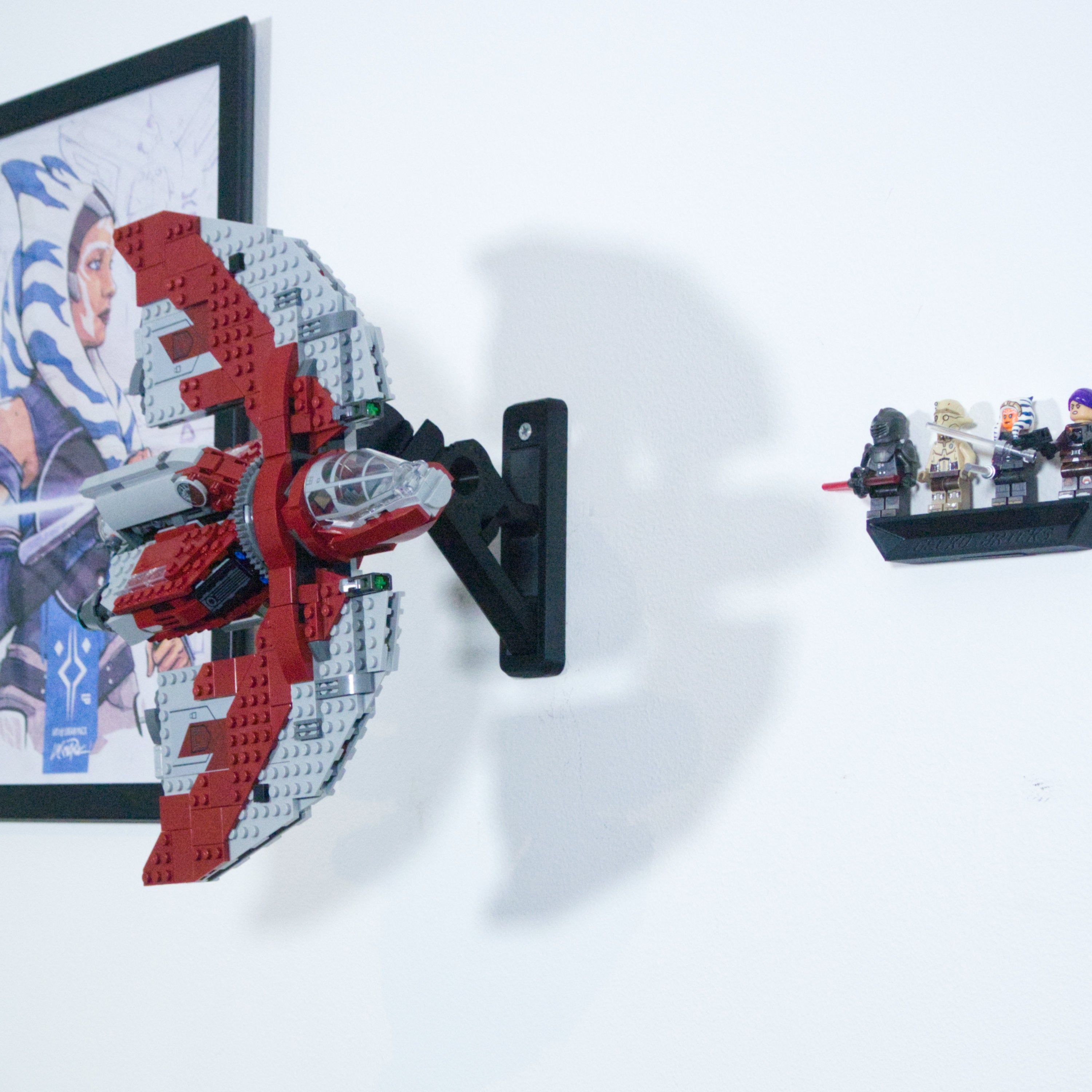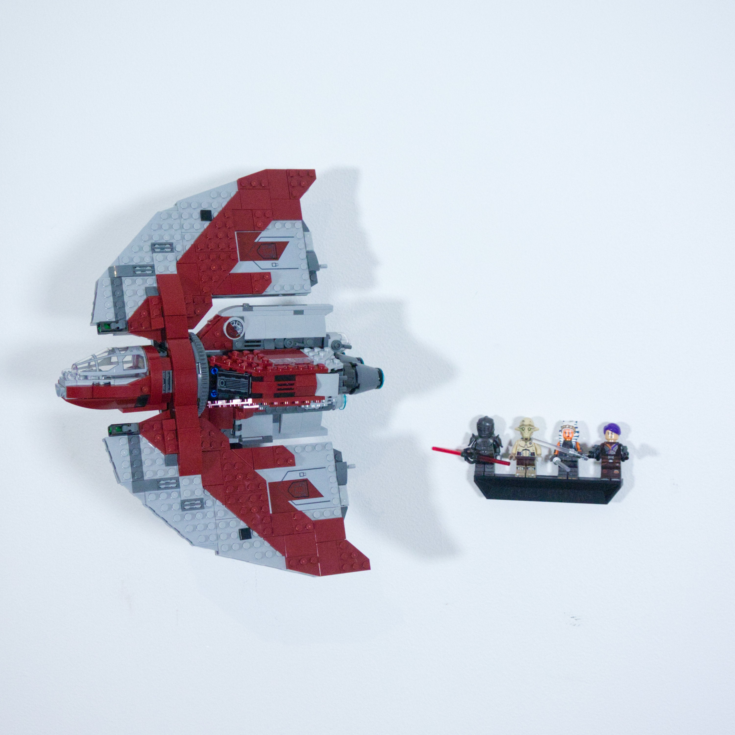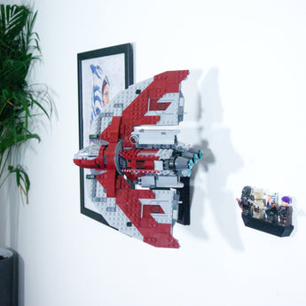 Muestre su LEGO Ahsoka Tano T-6 Jedi Shuttle de forma segura con este soporte de pared ajustable. Tiene múltiples ángulos de visualización y se puede montar en ambos lados de la nave. El set se sujeta firmemente pero es fácil de quitar de nuevo. Se incluye un soporte separado para minifiguras que se instala fácilmente junto al modelo.