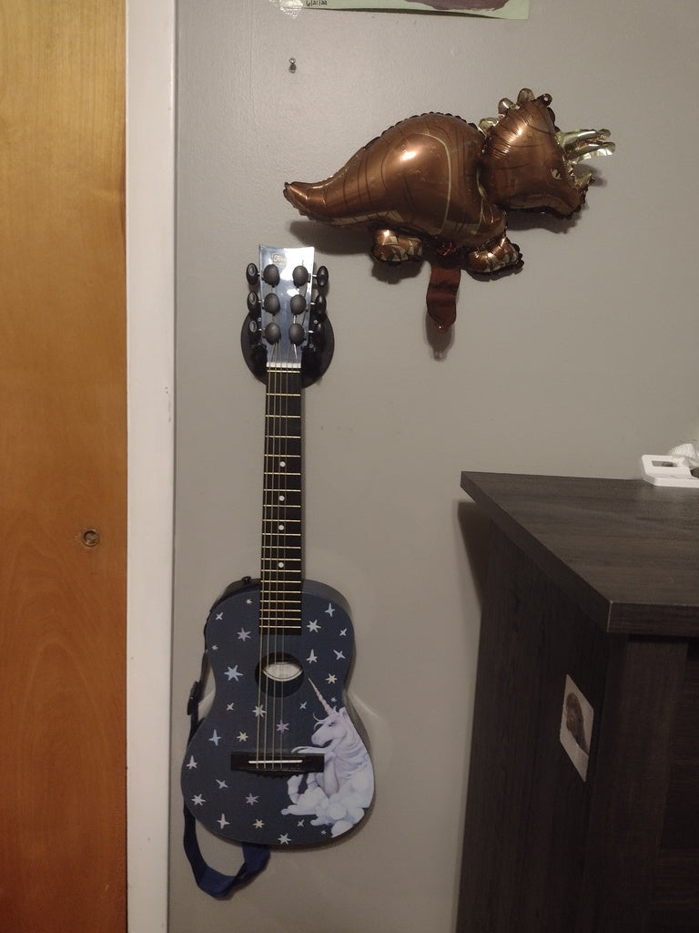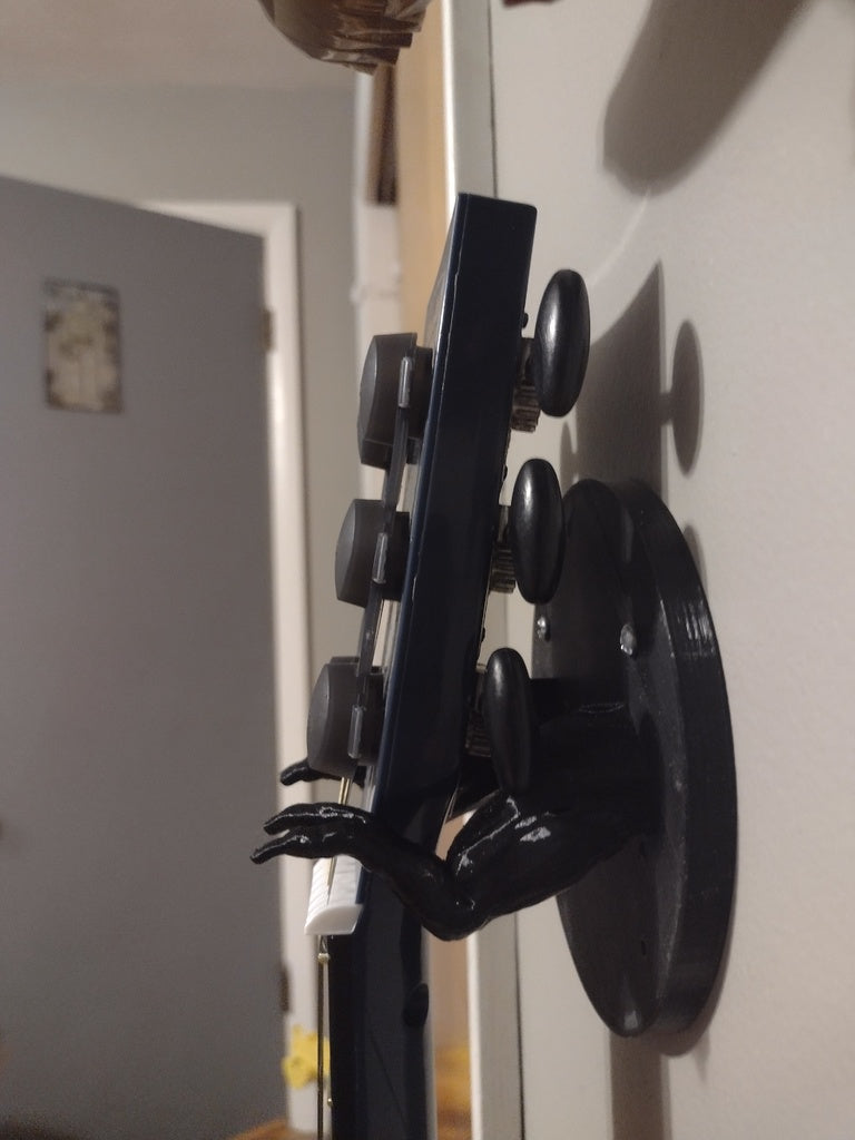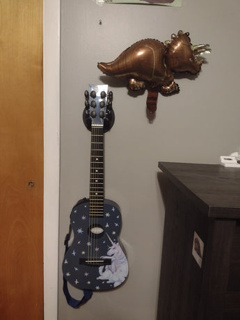 Al usar este soporte de pared, se libera espacio en el piso y el instrumento es fácilmente accesible cuando necesita ser utilizado. El diseño robusto es apropiado para varios mástiles de guitarra y es ideal para salas de música, habitaciones de niños o como una solución decorativa que combina funcionalidad con una expresión divertida.