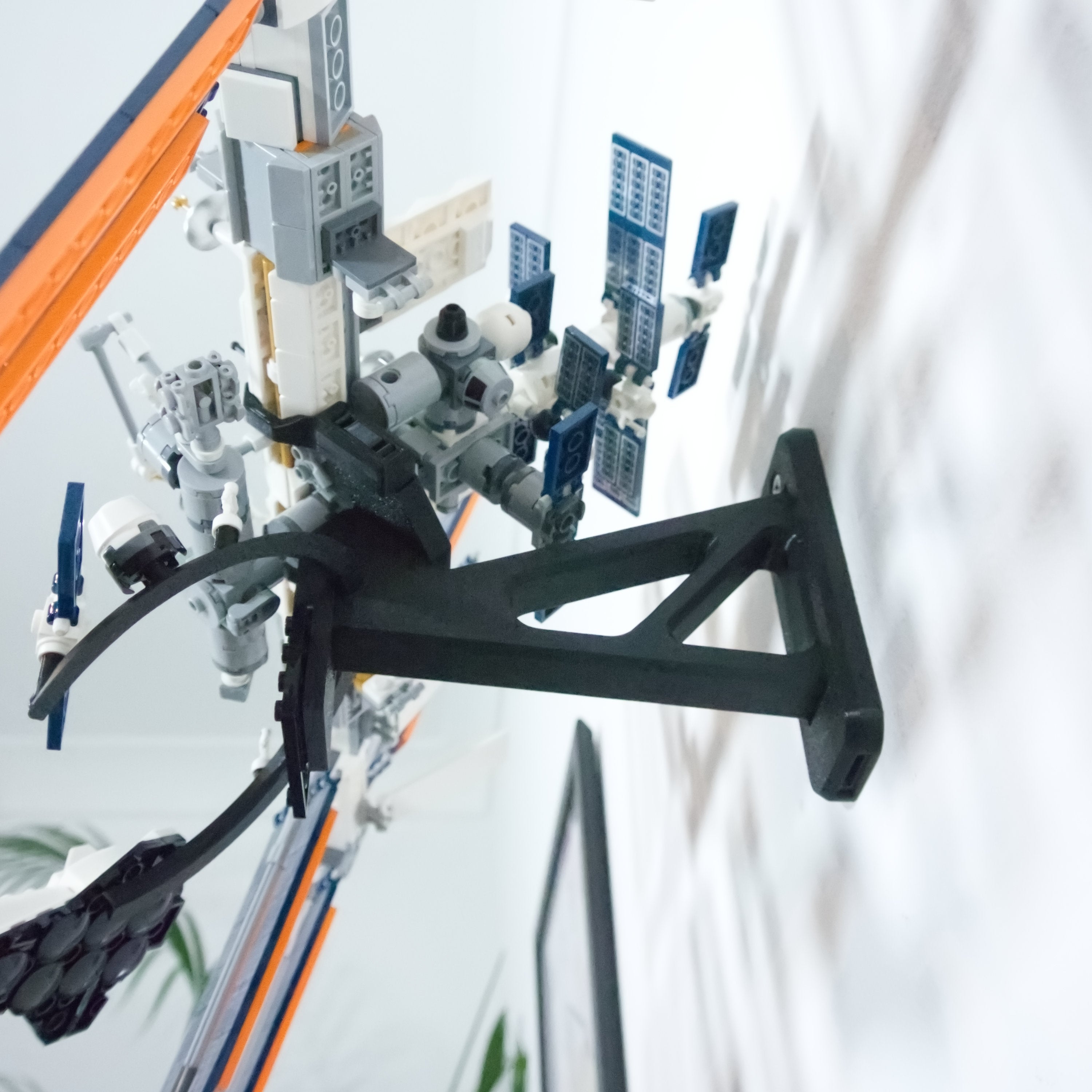 Obtenga una presentación elegante de su estación espacial ISS de la NASA con este soporte de pared funcional. El diseño permite un fácil montaje y desmontaje, para que el modelo pueda retirarse rápidamente cuando sea necesario. La solución incluye soportes dedicados para el transbordador espacial, los satélites y las figuras, lo que reúne toda la exhibición de forma segura en la pared.