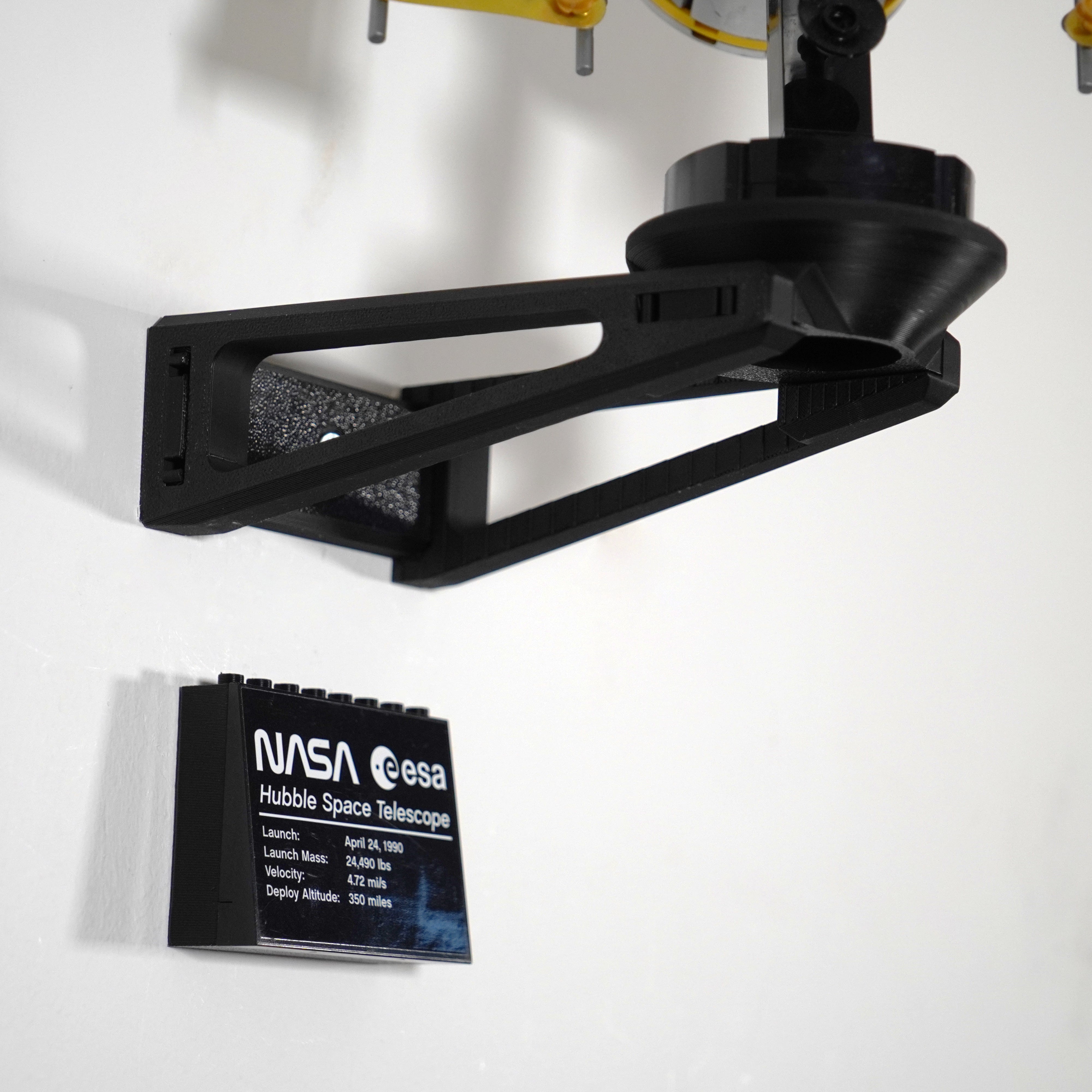 Exhiba su telescopio espacial Hubble de Lego de forma segura con este soporte de pared. Está diseñado para sostener el soporte original y permite girar el telescopio al ángulo deseado. La solución requiere un solo montaje en la pared, lo que facilita presentar el modelo de forma atractiva en casa.