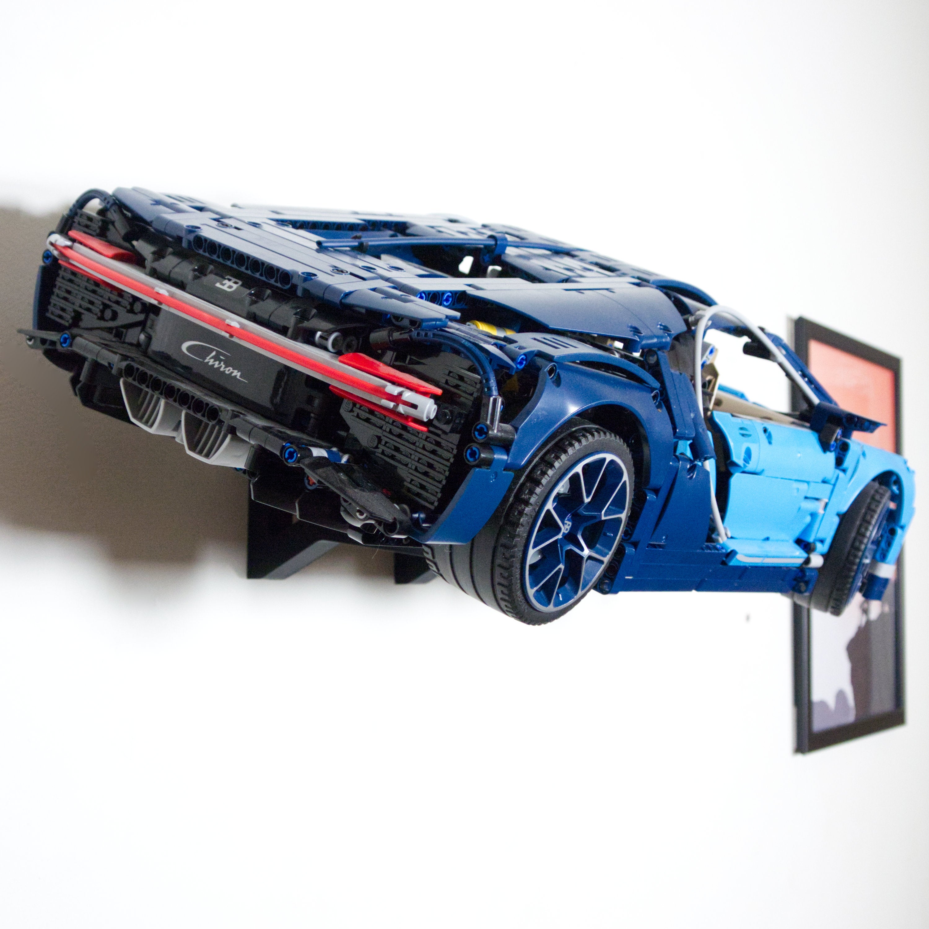 Muestre su Technic Bugatti Chiron con este soporte de pared funcional que libera espacio en estantes y escritorios. El soporte permite el montaje en dos posiciones diferentes, ya sea en ángulo hacia afuera de la pared o colocado verticalmente. Proporciona una solución estable y presentable para su colección de modelos en casa.