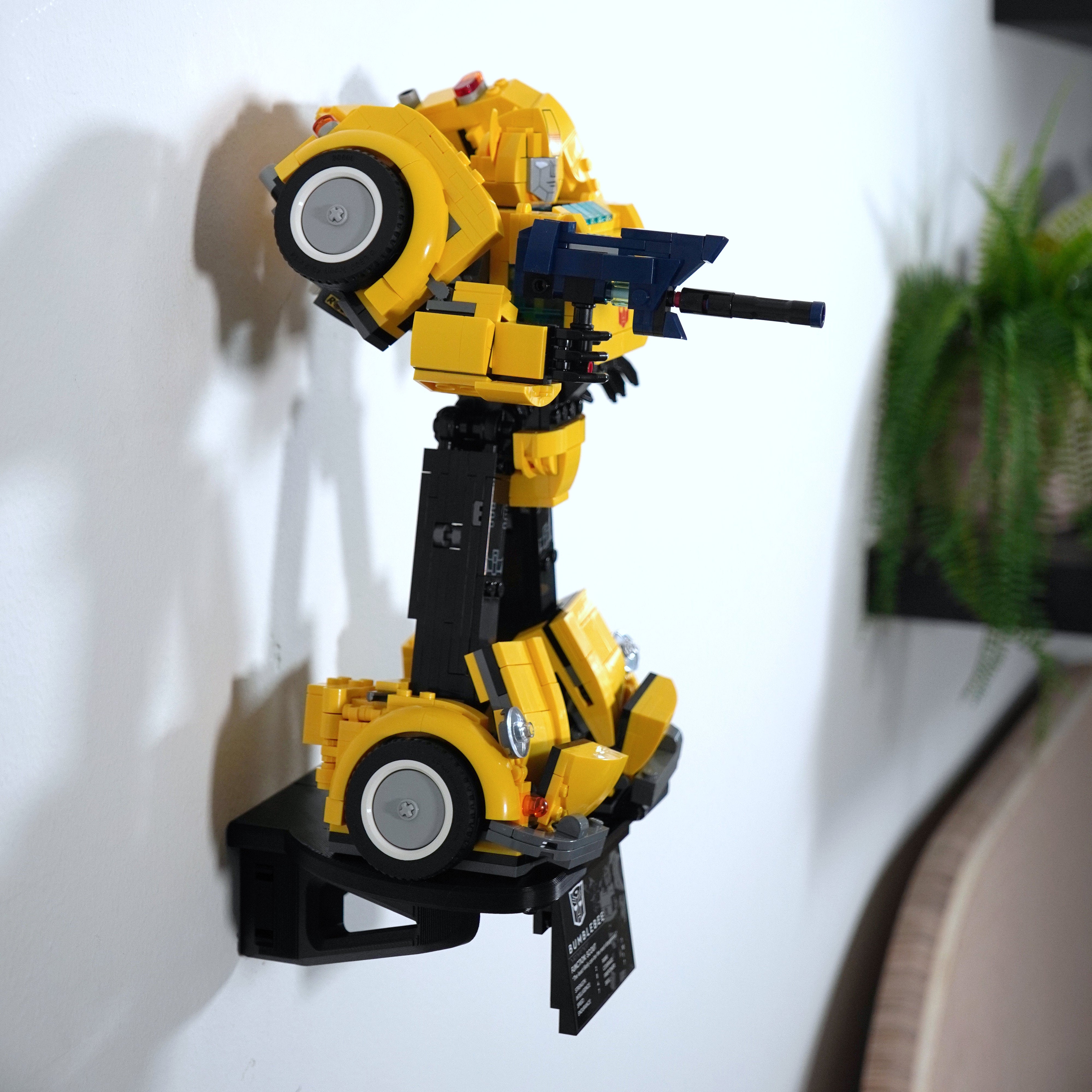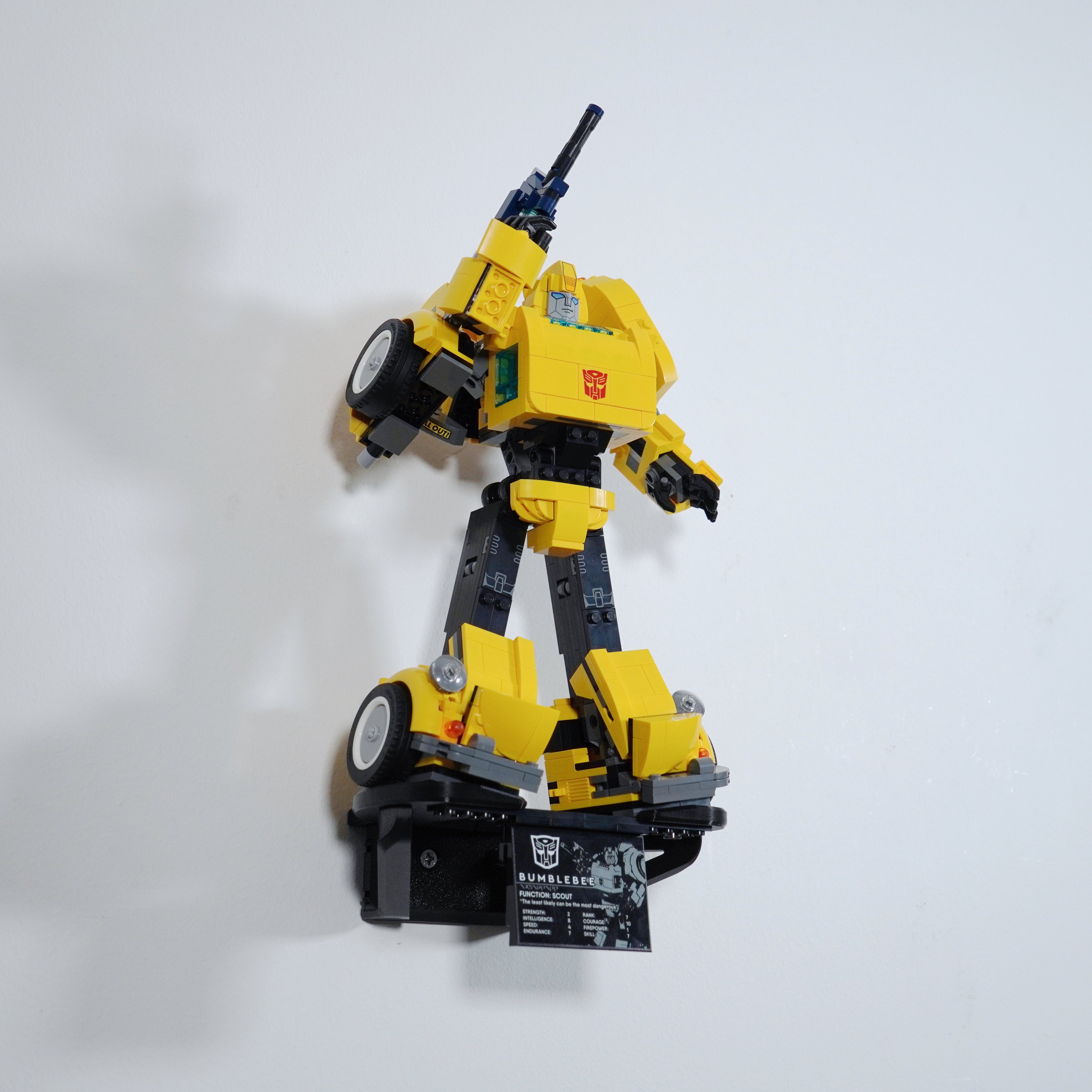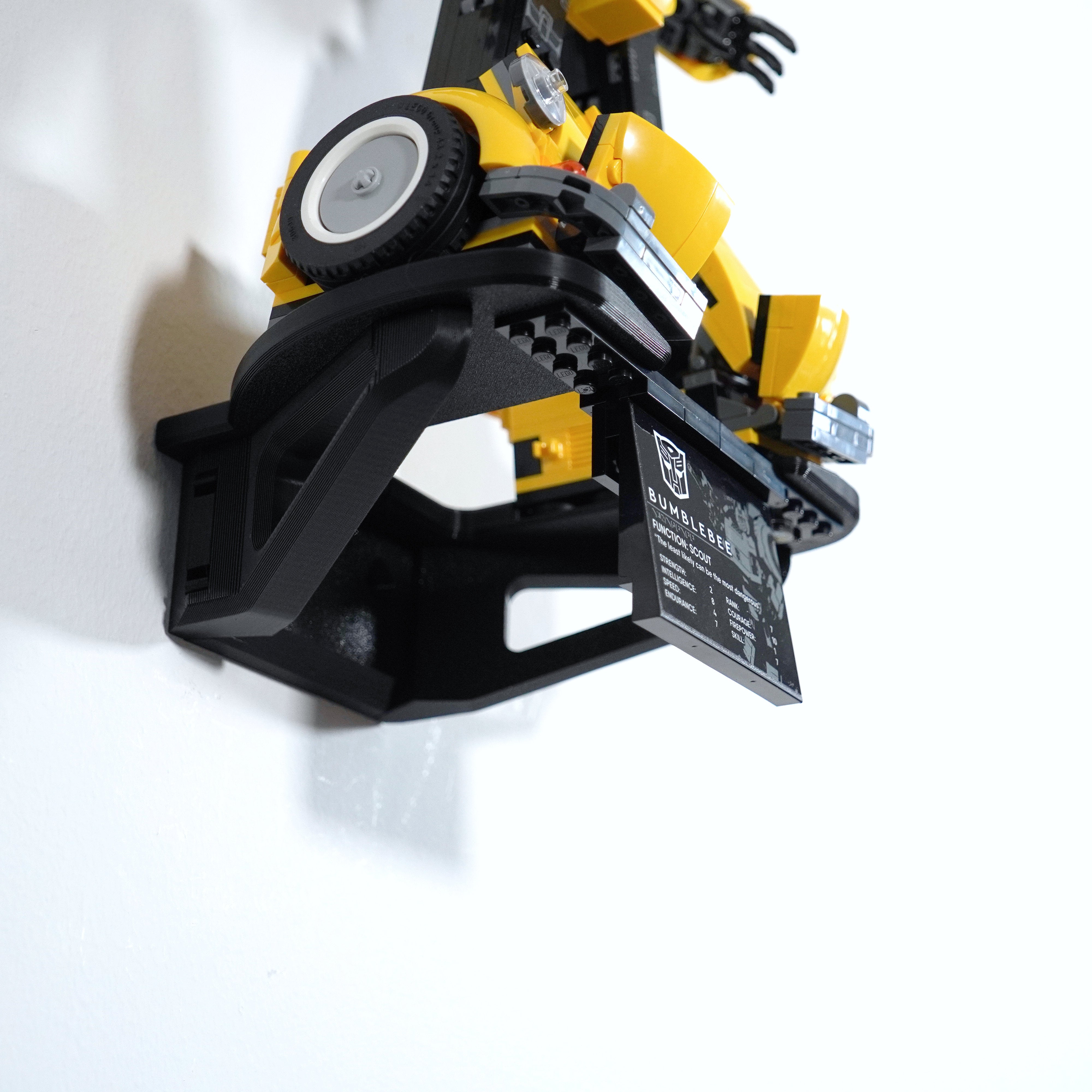 Este soporte de pared está diseñado específicamente para el Transformers Bumblebee 10338 y permite exhibir el modelo de forma segura. El conjunto se puede quitar fácilmente de la pared cuando sea necesario. El soporte también incluye un soporte para la placa informativa adjunta y se monta con dos tornillos de 4-5 mm.