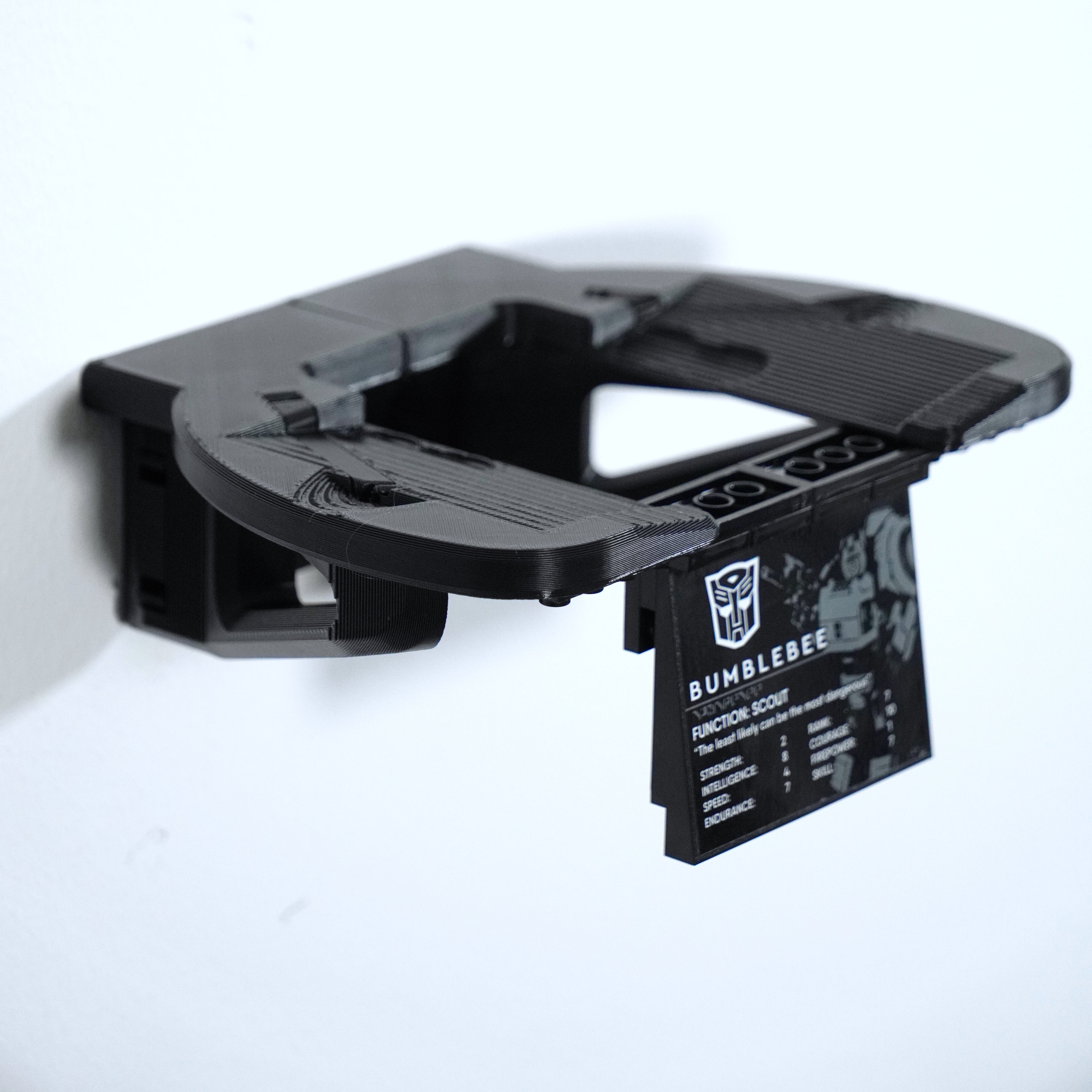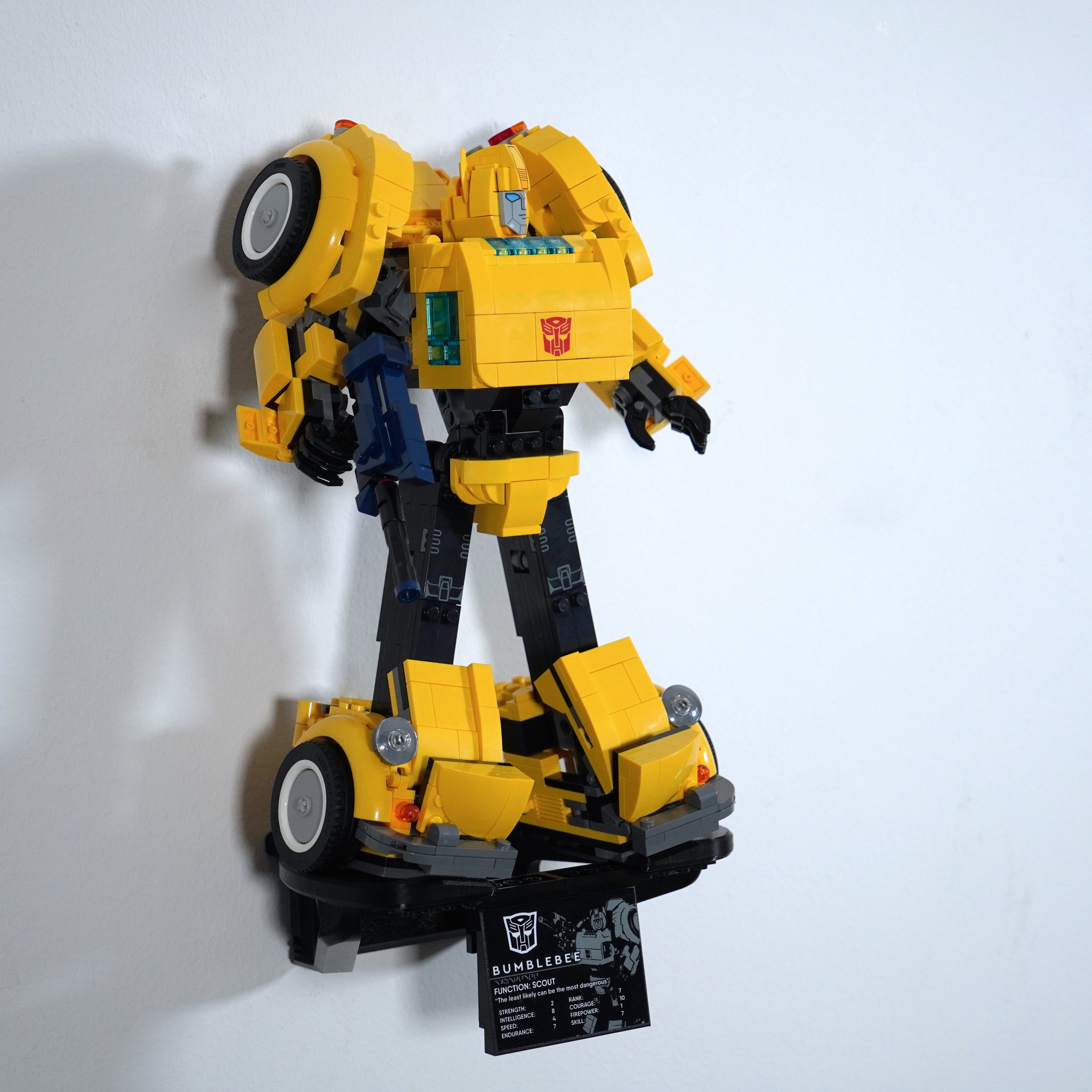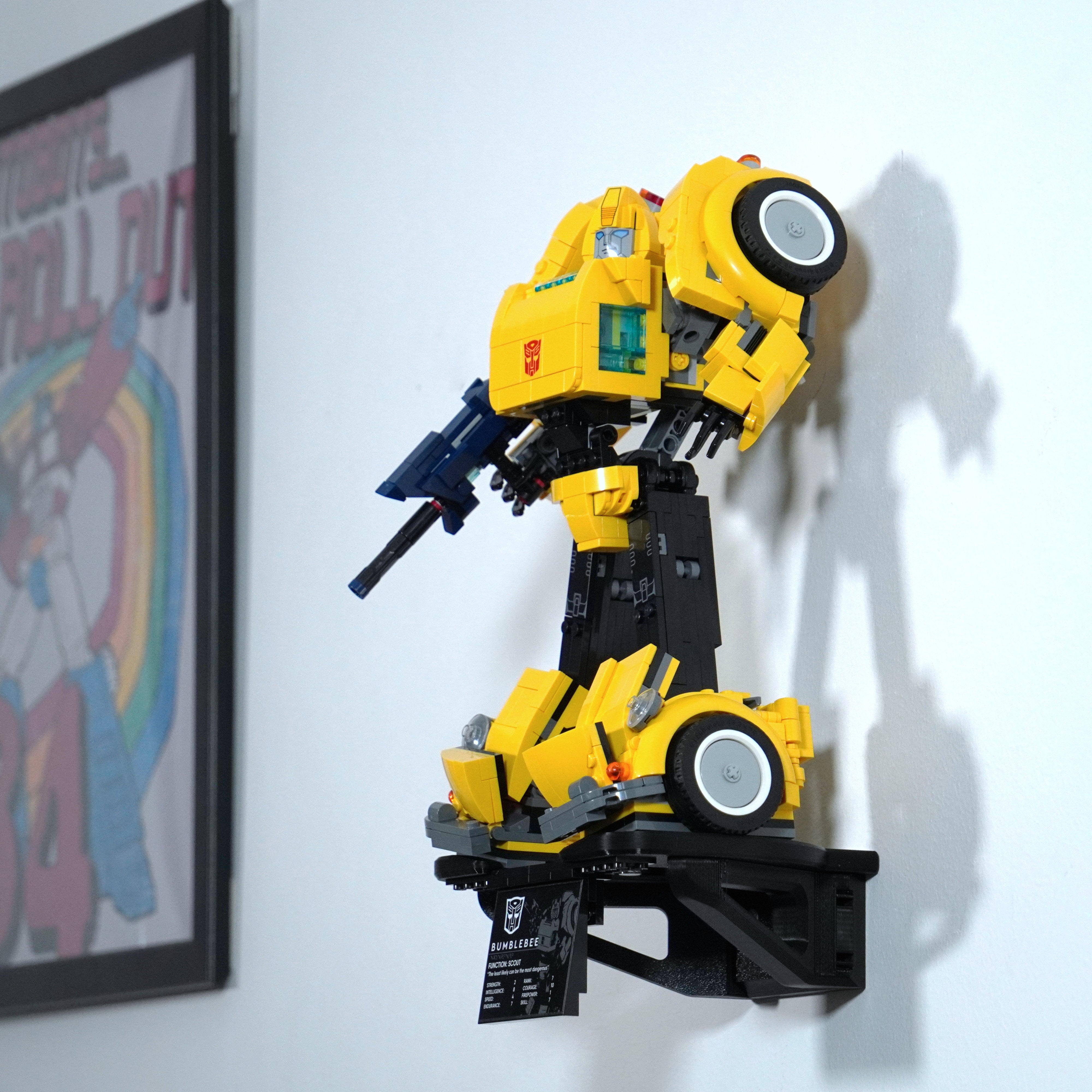 Este soporte de pared está diseñado específicamente para el Transformers Bumblebee 10338 y permite exhibir el modelo de forma segura. El conjunto se puede quitar fácilmente de la pared cuando sea necesario. El soporte también incluye un soporte para la placa informativa adjunta y se monta con dos tornillos de 4-5 mm.