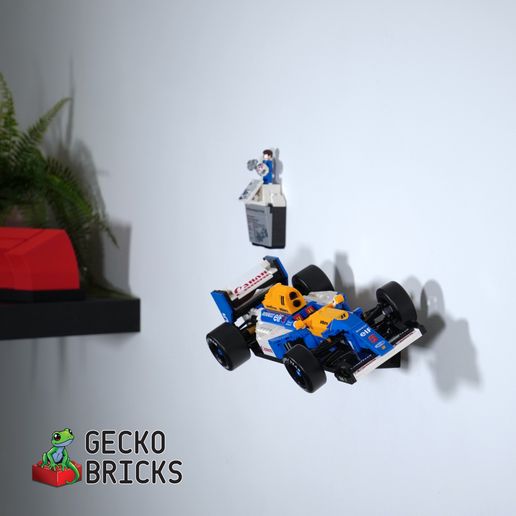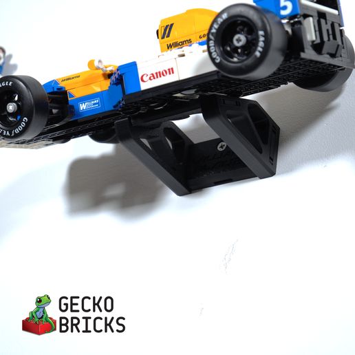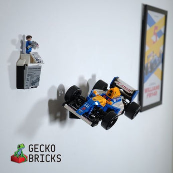 Cuelga tu Williams FW14B en la pared con este elegante soporte de pared. El soporte te permite elegir entre una presentación inclinada o vertical del coche de carreras. Es fácil montar y desmontar el modelo, y el kit también incluye soportes para el podio y la tarjeta de información incluidos.