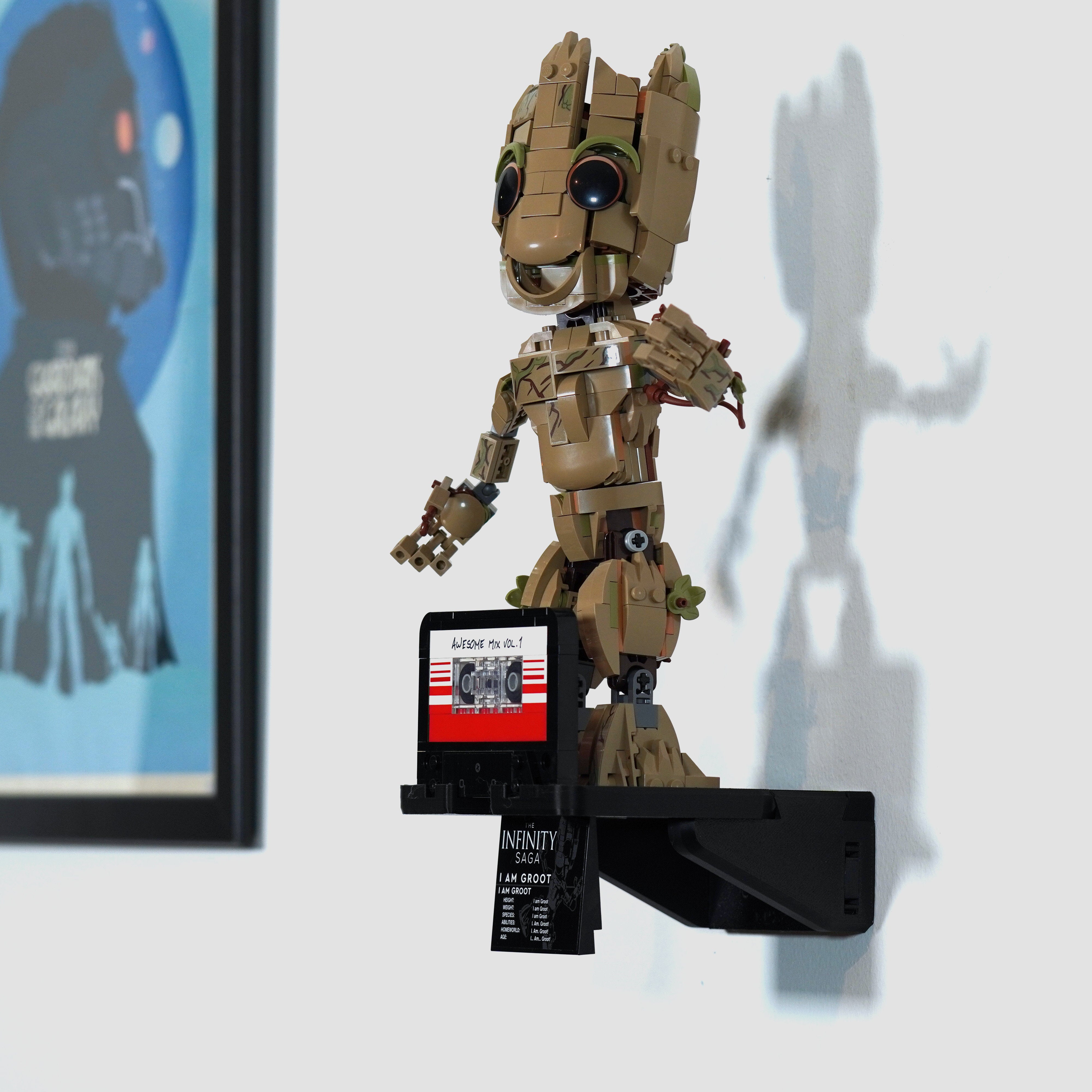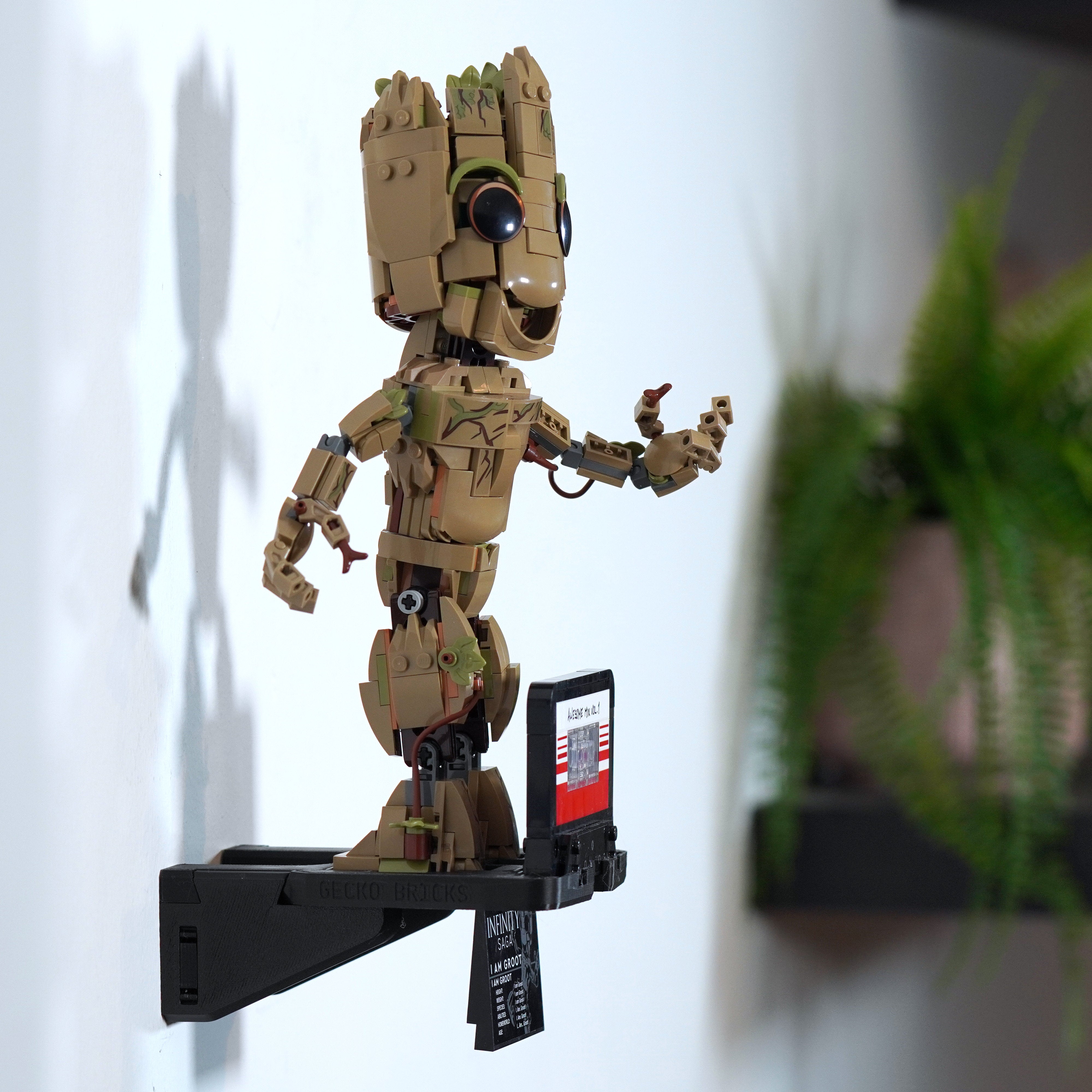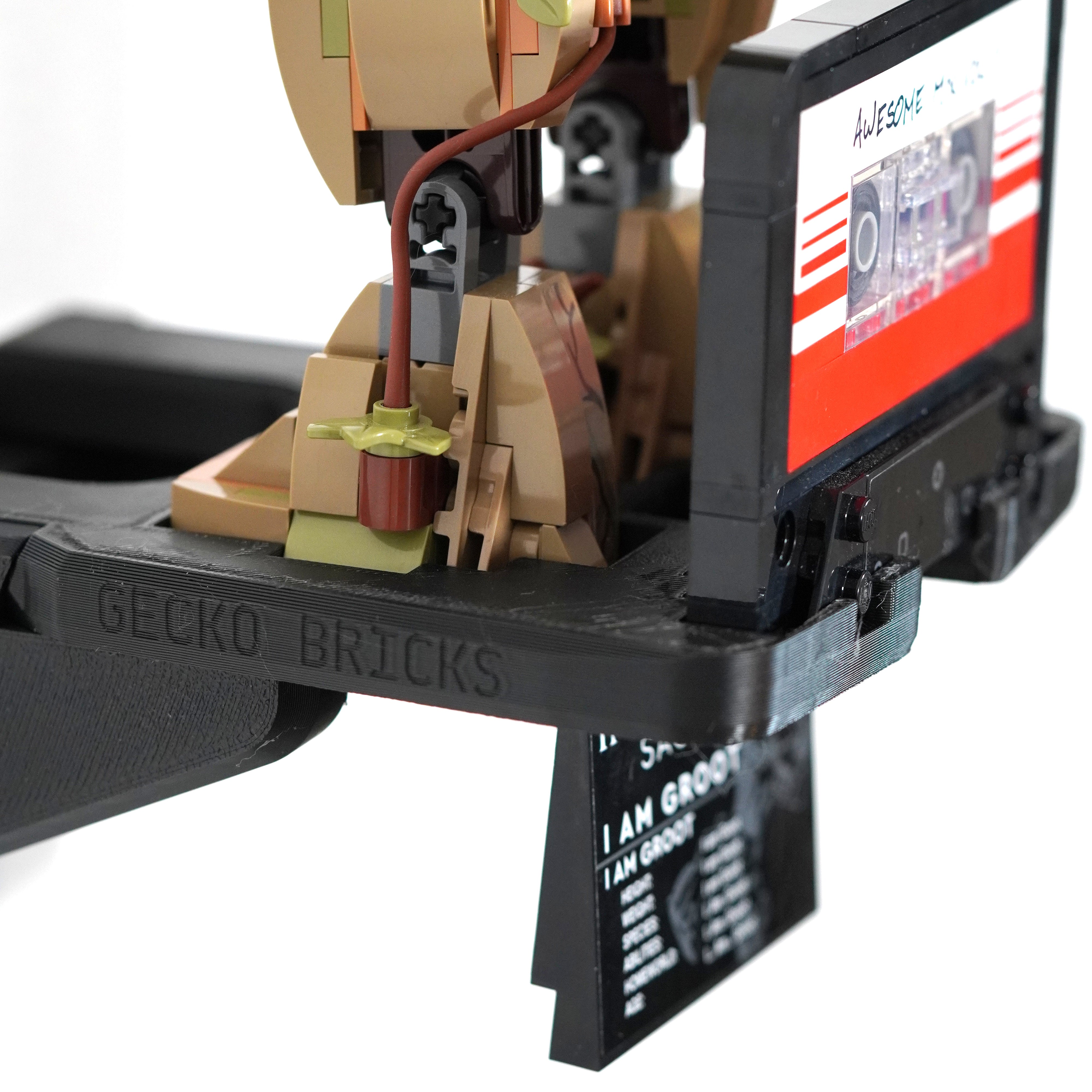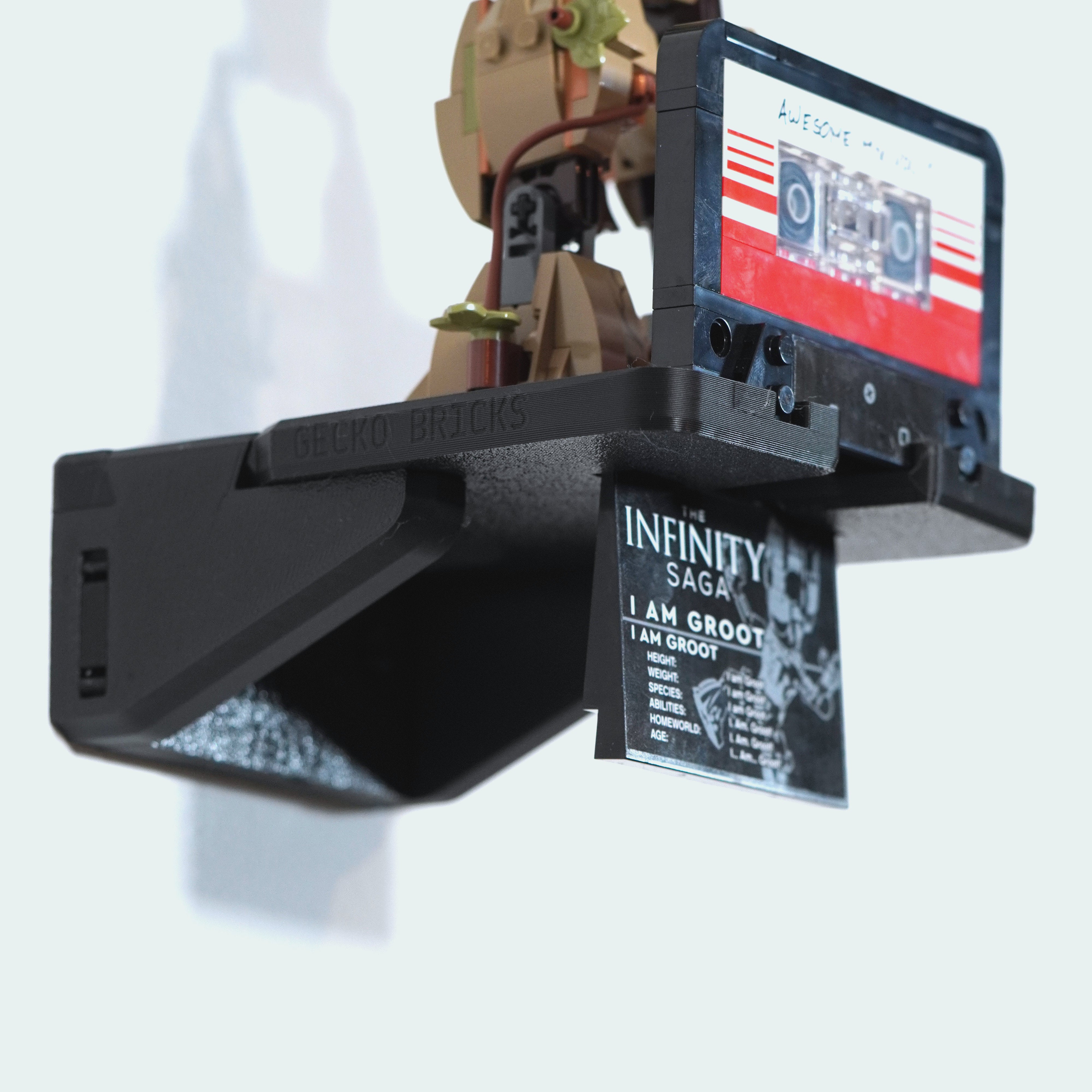 Este soporte de pared está diseñado específicamente para el set Marvel I Am Groot (76217). Permite exhibir la figura elegantemente en la pared, al mismo tiempo que facilita su retirada cuando sea necesario. El soporte también cuenta con un espacio dedicado tanto para la tarjeta de información como para el casete incluido para una exhibición completa.