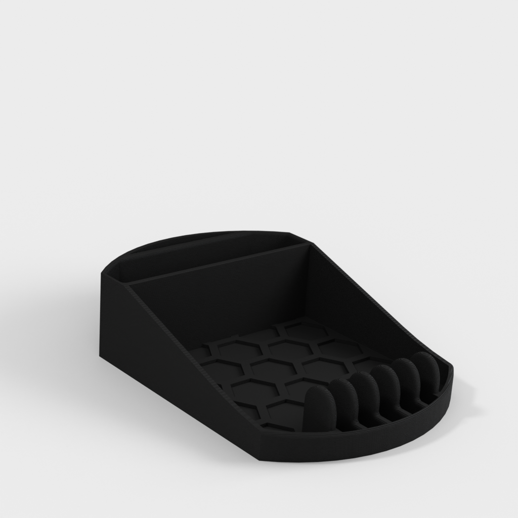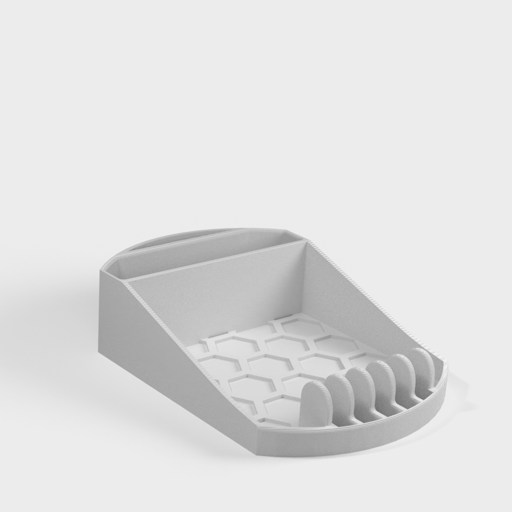 Este práctico soporte está diseñado para optimizar el espacio de tu cocina al funcionar como soporte para espátulas y soporte para tapas de ollas. Ofrece una solución inteligente para mantener tus utensilios de cocina y tapas de ollas más utilizados juntos y al alcance.