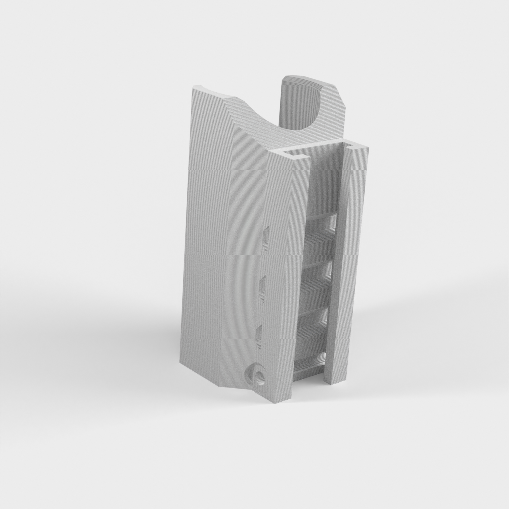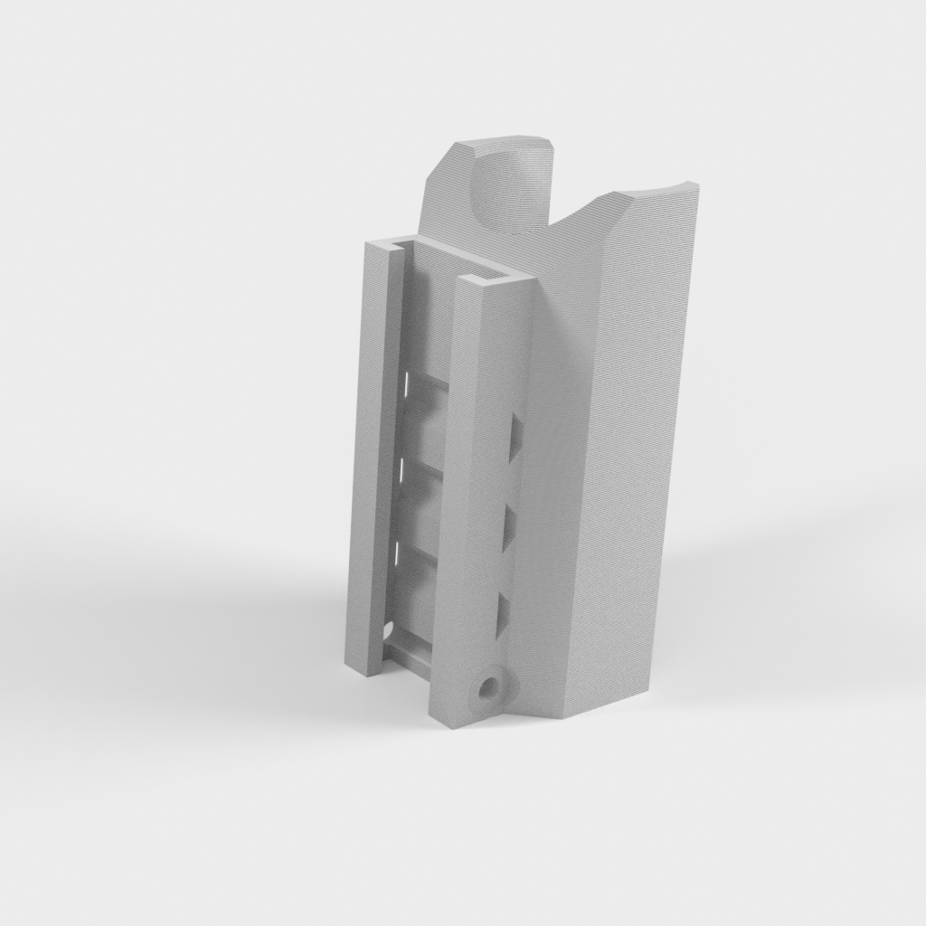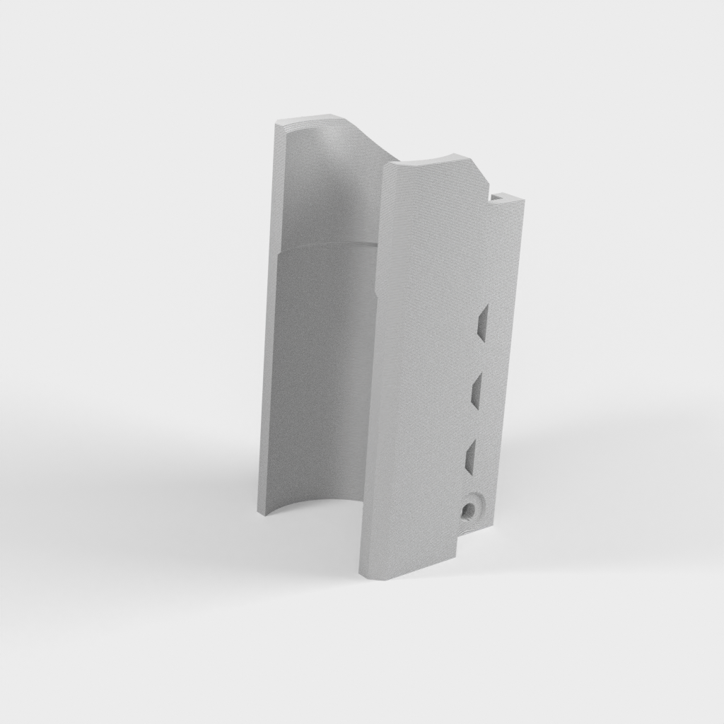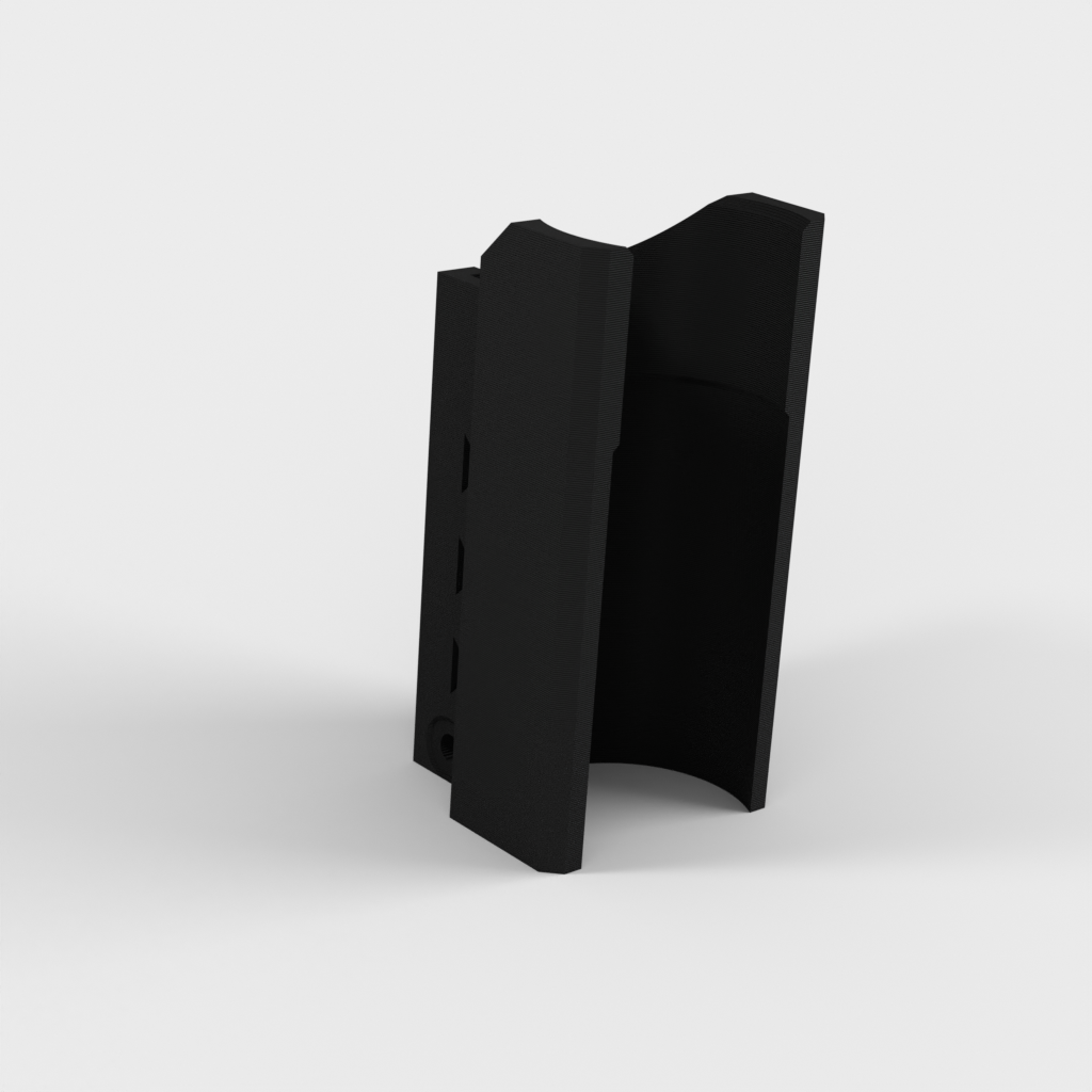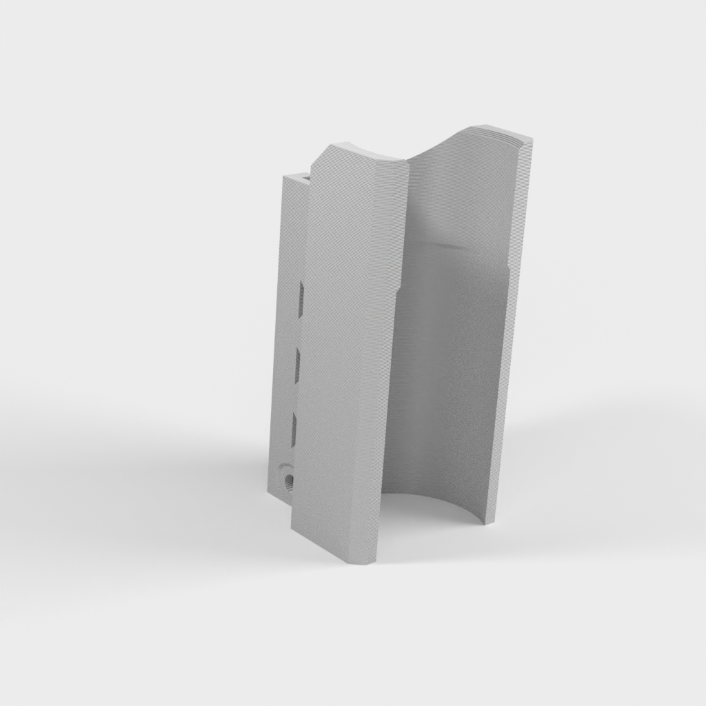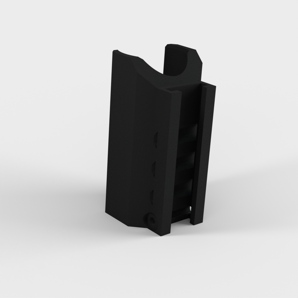 Este es un soporte táctico para linterna para Nerf Elite Rails. Diseñado para las linternas LED zoomables de 2000 lúmenes que puedes encontrar en Amazon. Las piezas necesarias son: 2 o 3 bridas para cables, un perno de tornillo M3 de 25 mm de largo, tuerca M3, una linterna y una pistola Nerf. Los orificios llevan un perno M3 a través de ellos y están diseñados para encajar en los huecos del Nerf Rail. Esto evita que el archivo adjunto se caiga. Los 3 orificios en el lateral son para bridas para mantener la linterna en su lugar. Esto está diseñado para imprimir sin soporte en posición vertical, lo que también permite la mayor resistencia para sostener la linterna. Ten en cuenta que esto solo funciona con Elite Rails y solo se ha probado en una Stryfe.