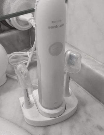 Este práctico soporte para cepillo de dientes está diseñado para mantener su cepillo de dientes eléctrico Philips Sonicare seguro en su lugar. Proporciona una solución de almacenamiento organizada y estable que protege su cepillo de dientes de daños innecesarios y asegura que siempre sea fácilmente accesible. Al darle a su cepillo de dientes eléctrico un lugar fijo cerca del fregadero, este soporte contribuye a una rutina matutina y nocturna más eficiente y optimizada. Una opción ideal para mantener el orden y la funcionalidad en cualquier baño, especialmente para los usuarios de Philips Sonicare.