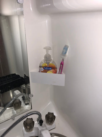 Consigue más orden y funcionalidad en tu baño, especialmente en espacios compactos como en una caravana o autocaravana. Este práctico soporte está diseñado para guardar jabón suave y cepillos de dientes de forma eficaz, para que tu baño se mantenga limpio y ordenado. Su diseño universal hace que encaje en la mayoría de las esquinas de 90 grados, y se puede fijar fácilmente con cinta adhesiva de doble cara. Tanto si buscas un organizador de lavabo inteligente para el jabón como un lugar fijo para tus cepillos de dientes, este soporte ofrece una solución discreta y funcional para el baño.