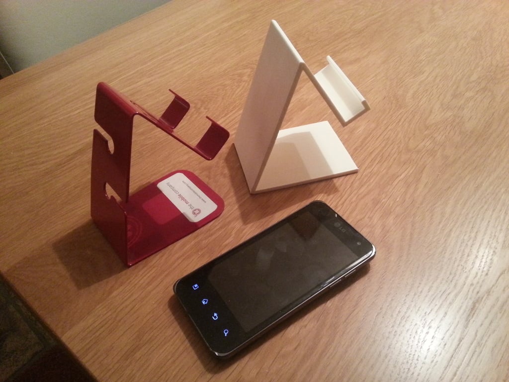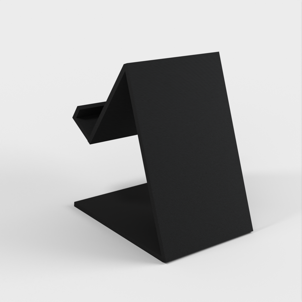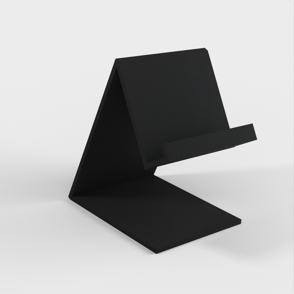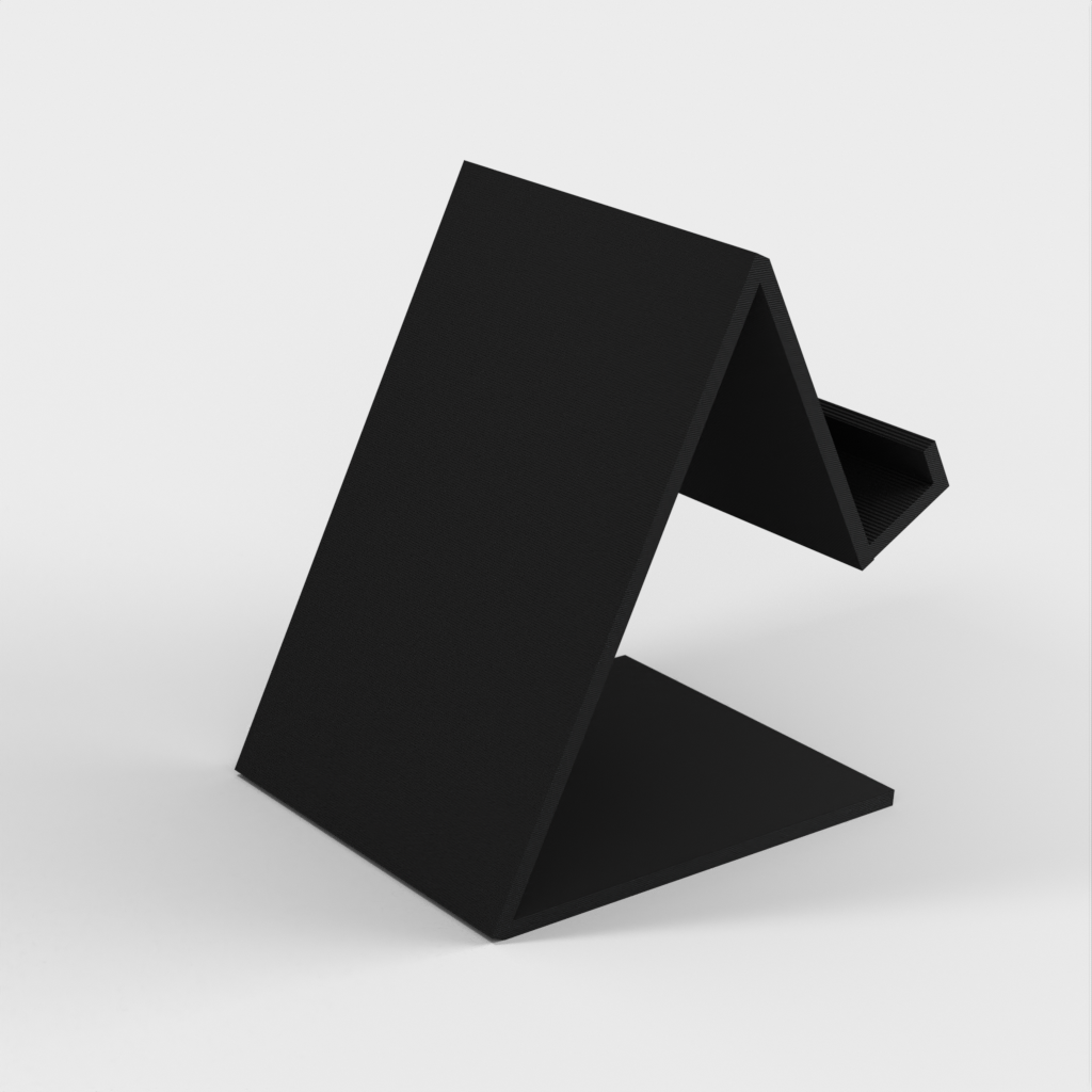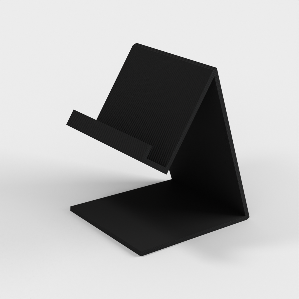 Soporte universal para teléfono móvil hecho con openscad. El soporte está diseñado para adaptarse a diferentes tipos de teléfonos móviles y le permite colocar y utilizar fácilmente su teléfono en una superficie sólida.