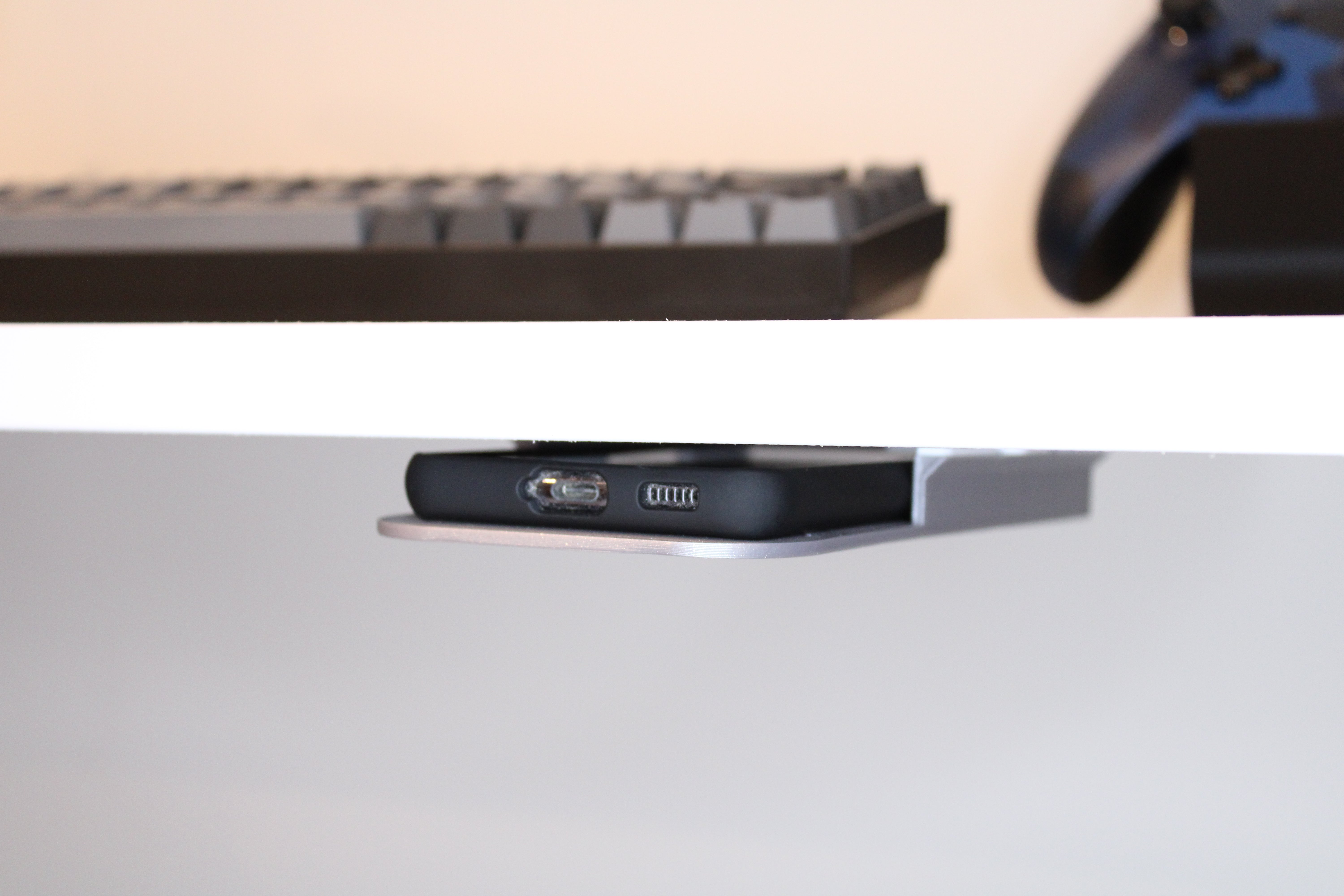 Este soporte para teléfono está diseñado para optimizar tu espacio de trabajo manteniendo tu smartphone discretamente oculto debajo del escritorio. Ayuda a reducir el desorden y te permite mantener la concentración en tus tareas, ya que el teléfono está fuera de la vista pero sigue siendo fácilmente accesible.