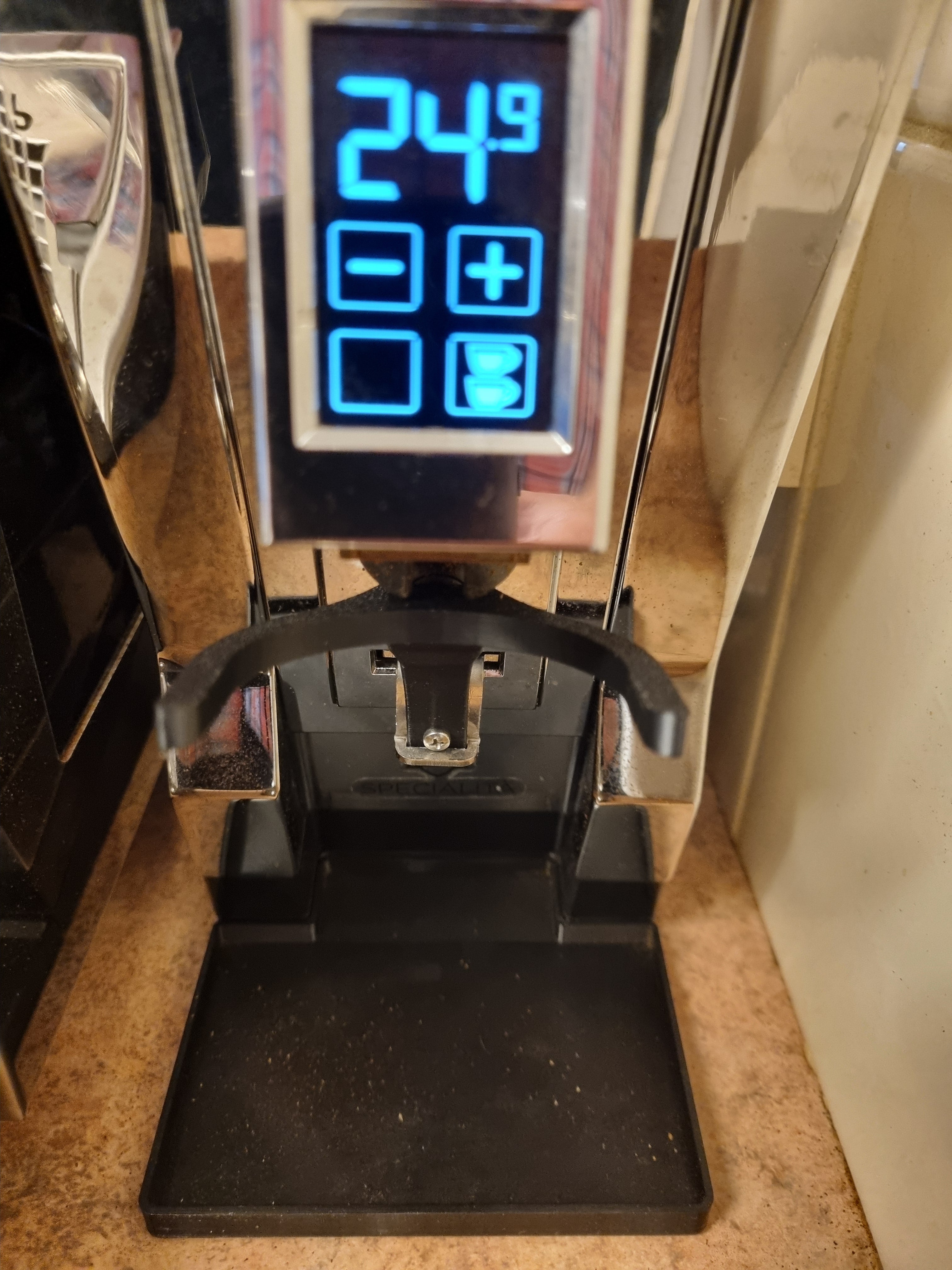 Una bandeja de recogida integrada minimiza el desperdicio de café molido y mantiene tu espacio de trabajo limpio y organizado. Para facilitar la activación del molido, puedes elegir una versión con un botón V2 fácil de usar o utilizar una almohadilla de goma adhesiva.