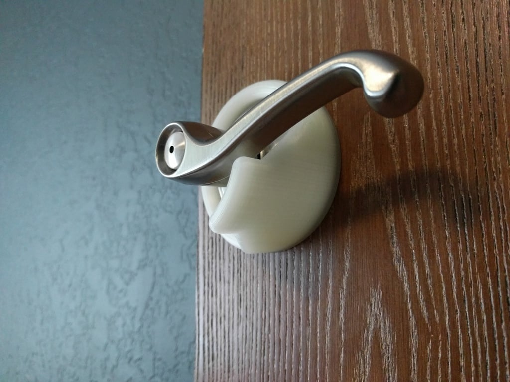 Una cerradura de seguridad para manillas diseñada para impedir fácilmente que los niños pequeños y las mascotas abran las puertas. Este producto es especialmente eficaz con manillas fáciles de maniobrar, como las manillas estilo 'flair' de Schlage, así como con muchos otros modelos y marcas. La instalación es sencilla, ya que sólo requiere retirar y volver a instalar la manilla de la puerta con la nueva cerradura colocada. Alternativamente, la unidad puede instalarse sin retirar la manilla de la puerta si hay suficiente espacio en la superficie. El producto tiene un diámetro máximo de la placa trasera de 29 mm y una distancia desde la superficie de la puerta hasta la parte trasera de la manilla de 47 mm.