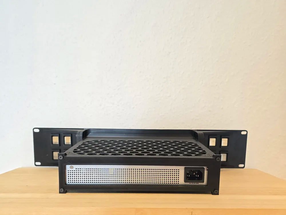 Dette 2U rackbeslag gør det muligt at montere en Ubiquiti UniFi US-8-150W switch i et standard 19-tommer rackskab. Designet inkluderer valgfrie sidepaneler med plads til keystones, hvilket sikrer en pæn og organiseret netværksinstallation. Monteringen kræver M5-skruer og møtrikker for sikker fastgørelse.